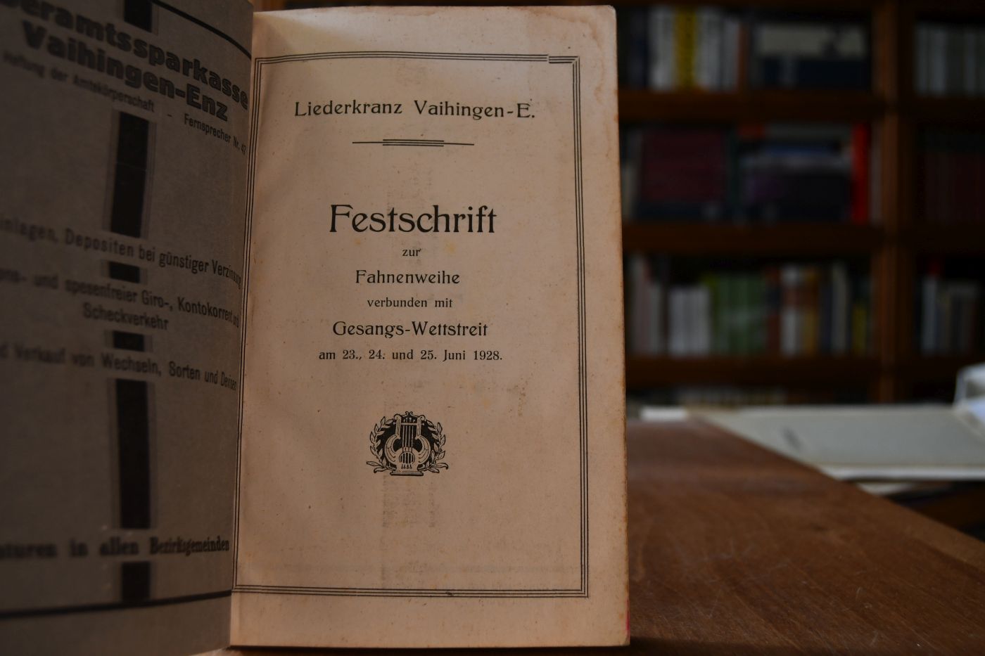 Festschrift zur Fahnenweihe verbunden mit Gesangs-Wettstreit am 23., 24 und 25. Juni 1928 Liederkranz Vaihoingen-E.