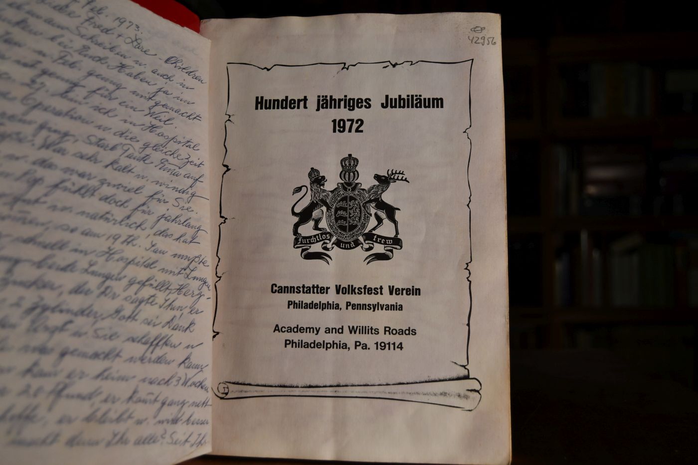 Hundert jähriges Jubiläum 1972 Cannstatter Volksfest Verein Philadelphia Pennsylvania.