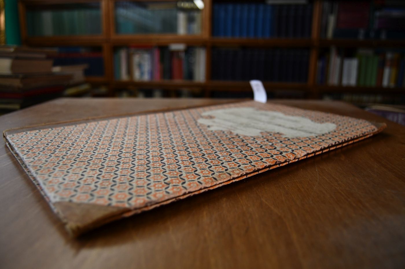 Format 38 x 23 cm, Halbleder mit Lederecken und handschriftlichem Deckelschild