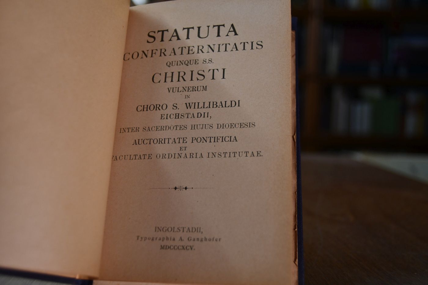 Statuta Confraternitatis quinque S.S. Christi vulnerum in Choro S. Willibaldi Eichstadii, inter Sacerdotes hujus Diocesis Auctoritate Pontificia et Facultate ordinaria Institutae.