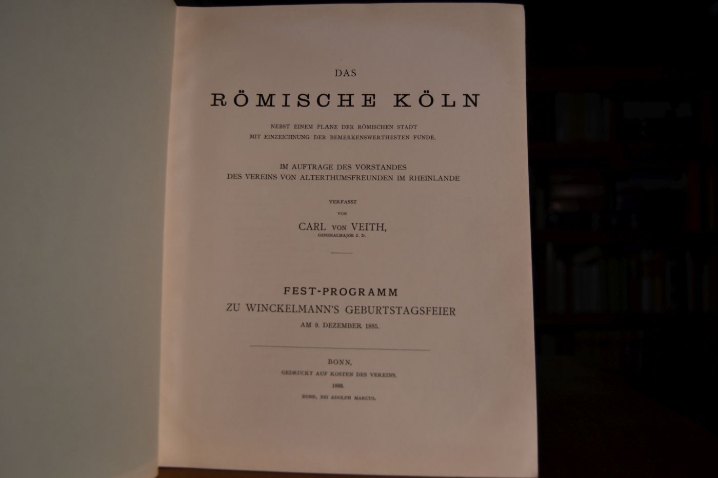 Das Römische Köln, nebst einem Plane der römischen Stadt. Mit Einzeichnung der bemerkenswerthesten Funde. Festprogramm zu Winckelmann`s Geburtstagsfeier am 9. Dezember 1885.
