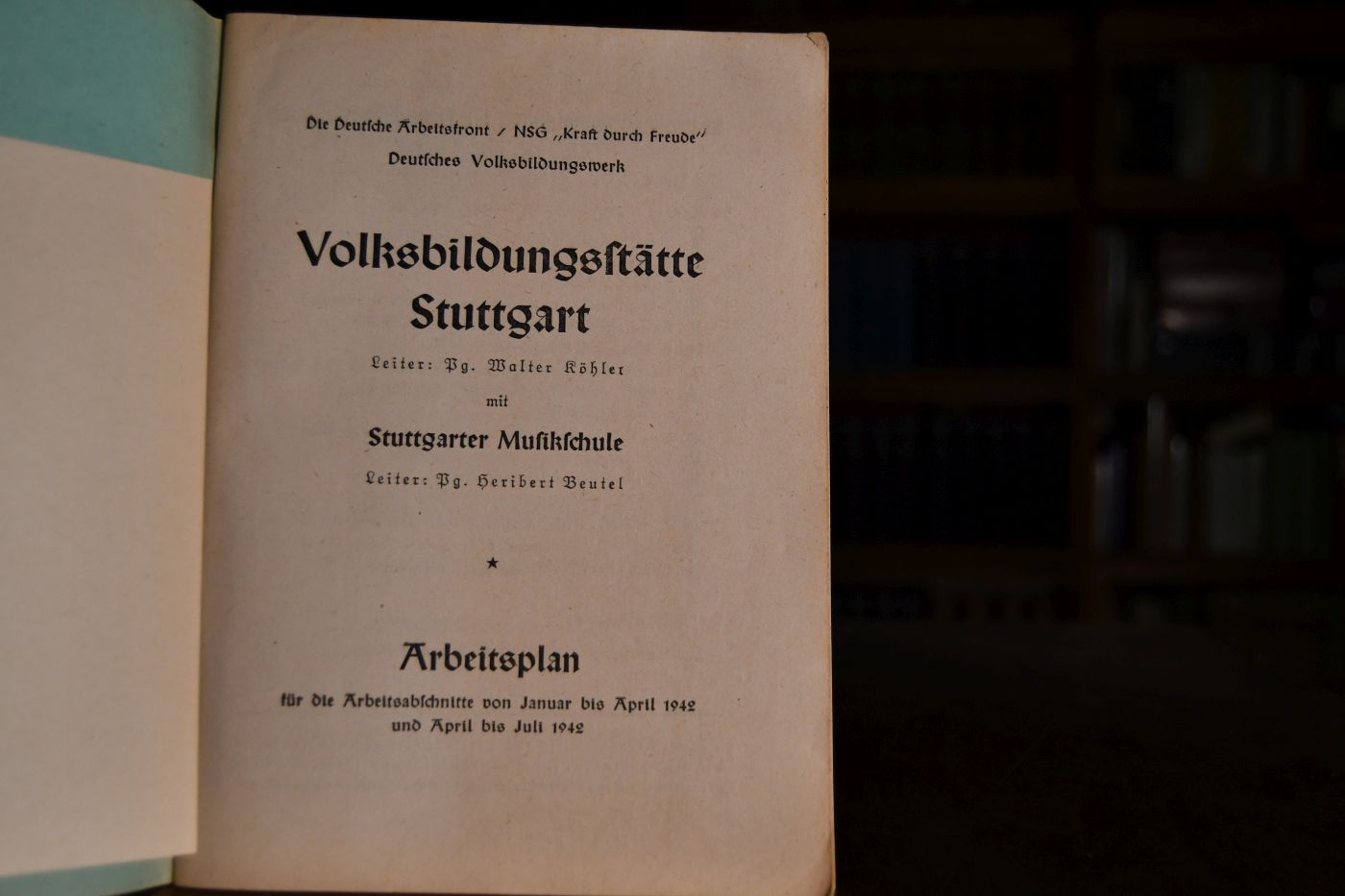 Volksbildungsstätte Stuttgart Arbeitsplan für die Arbeitsabschnitte von Januar bis April 1942 und April bis Juli 1942.