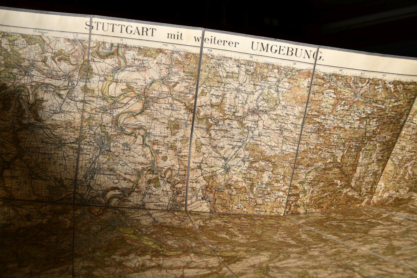 Seiten Leinenfaltkarte mit aufmontierten Kartensegmenten
