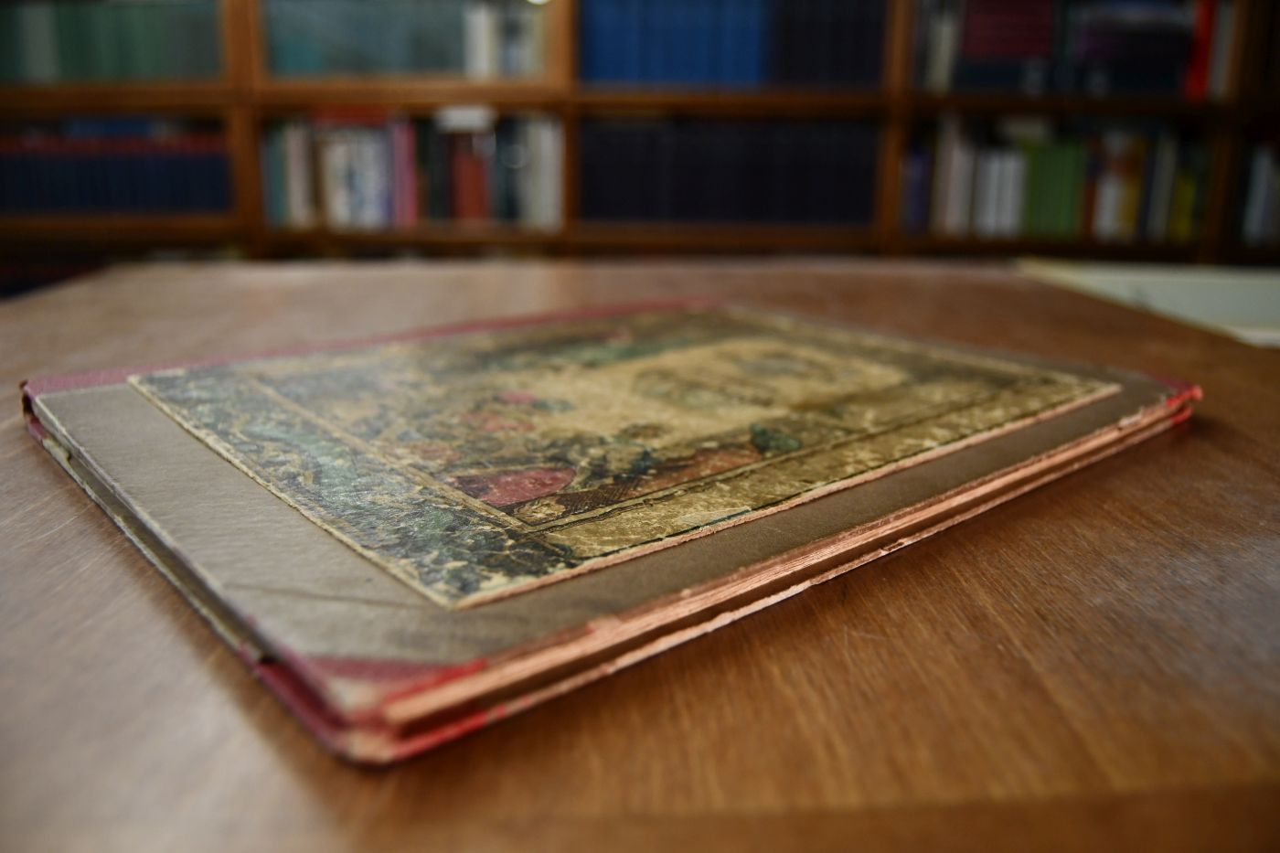 Format 28 x 22 cm, neueres Halbleinen mit aufgezogenem Teil des Originaldeckels