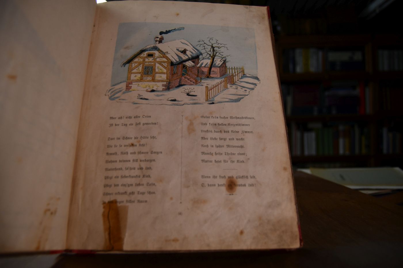 Beschreibung Einband berieben und bestoßen. Einige Seiten mit deutlichem Verlust, dieser ergänzt und Text handschriftlich ergänt, ebenso die Bilder. Durchgehend fleckig und mit Einrissen, die teilweise mit Tesafilm geklebt wurden. Gutes Belegexemplar. Das Buch wurde 1947 vom Großvater, der es 1888 selbst erhalten hatte, seiner Enkelin gewidmet. Es ist anzunehmen, dass es dieser auch soweit aufgearbeitet hat, wie es jetzt vorliegt.