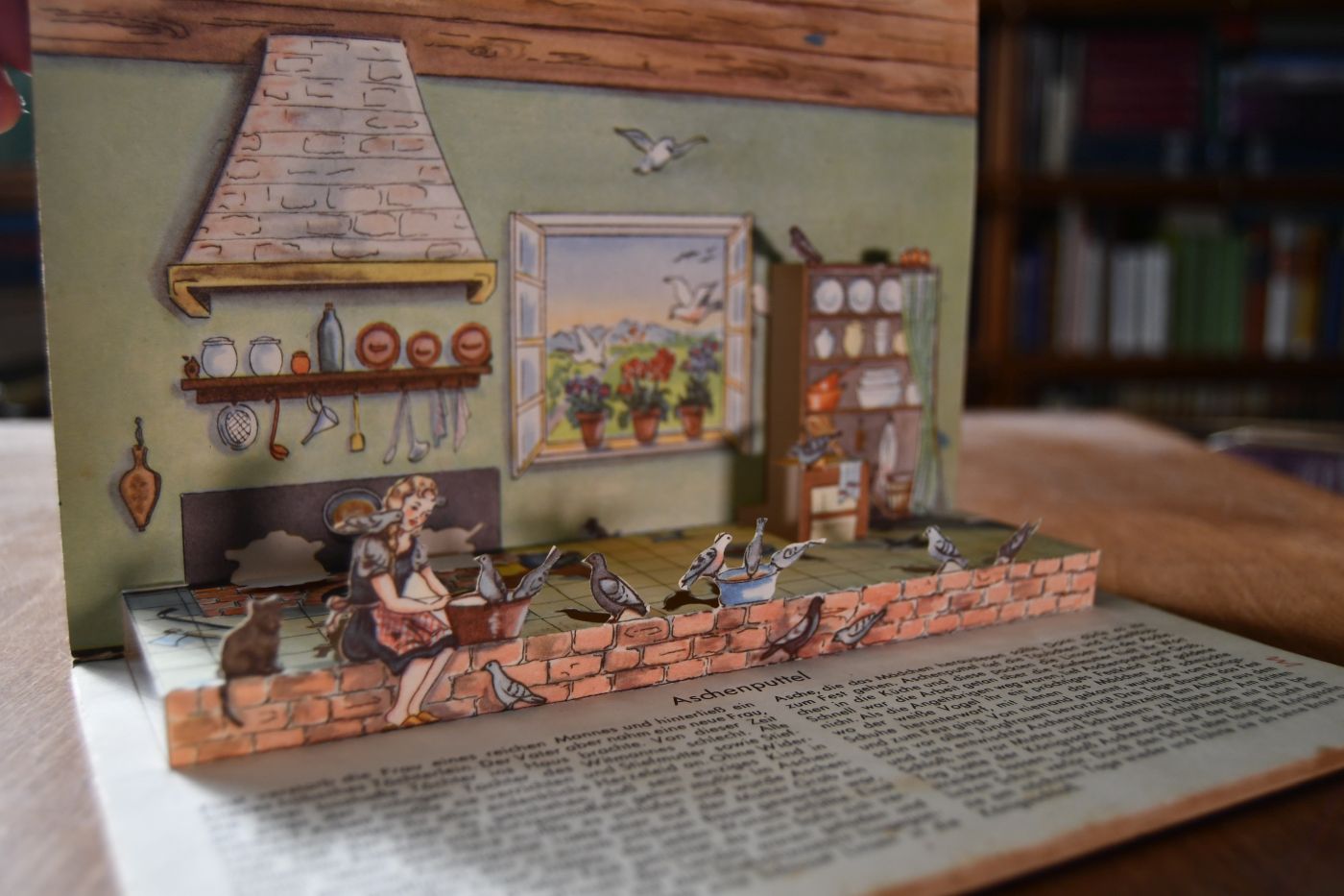Beschreibung Einband berieben und bestoßen. Rücken mit Einrissen. Enthält vier Klappbilder mit Märchen: Aschenputtel; der Wolf und die sieben Geißlein; Tischlein deck dich, Tischlein streck dich; die Bremer Staftmusikanten. Kleinere Abrisse. Bei den Stadtmusikanten sind diese abgerissen und die Räuber fehlen.