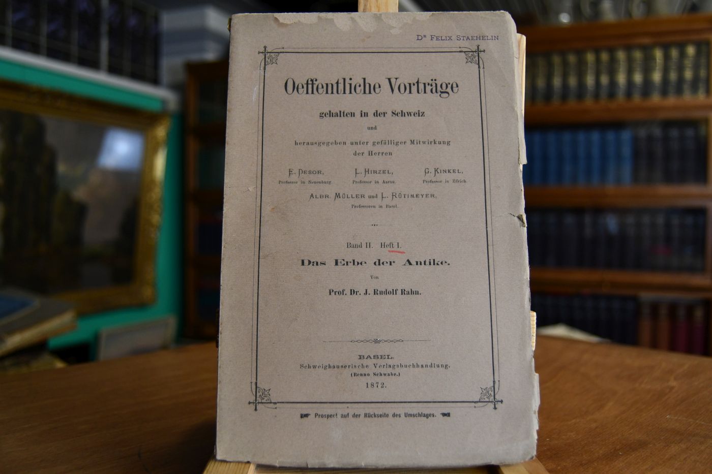 Beschreibung Einband berieben, bestoßen, mit Einrissen und Verlust. Besitzerstempel (Felix Staehelin) auf dem Vorderdeckel. Durchgehend fleckig.