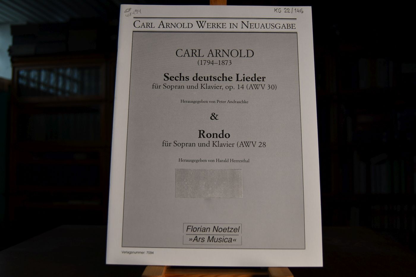 Carl Arnold (1794-1873) Sechs deutsche Lieder für Sopran und Klavier, op. 14 (AWV30) herausgegeben von Peter Andraschke & Rondo für Sopran und Klavier (AWV 28) herausgegeben von Harald Herresthal.
