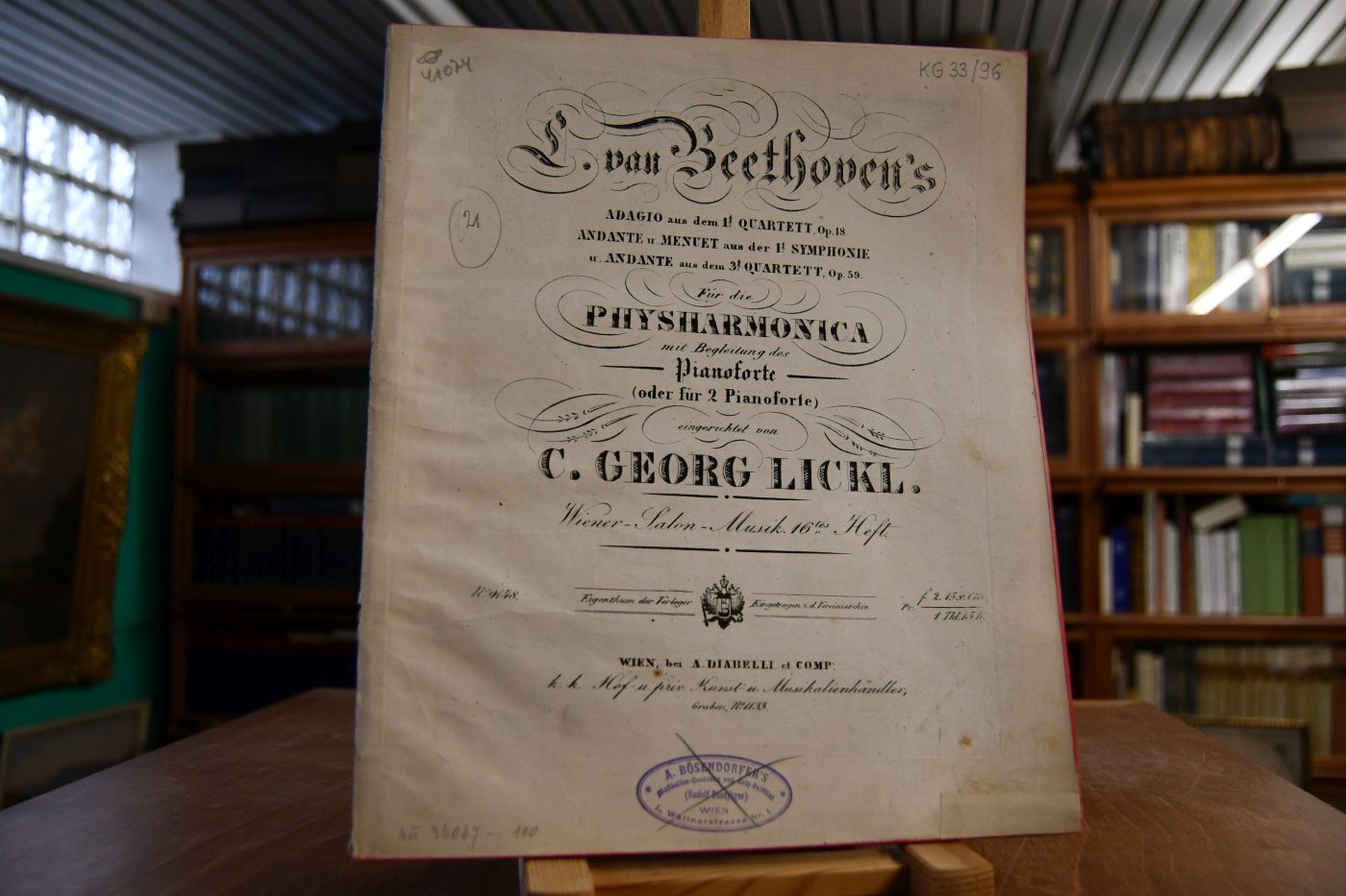Adagio aus dem 1. Quartett, Op. 18. Andante u. Menuet aus der 1. Symphonie [Op. 21] u. Andante aus dem 3. Quartett, Op. 59. Für die Physharmonica mit Begleitung des Pianoforte (oder für 2 Pianoforte) eingerichtet von C. Georg Lickl.