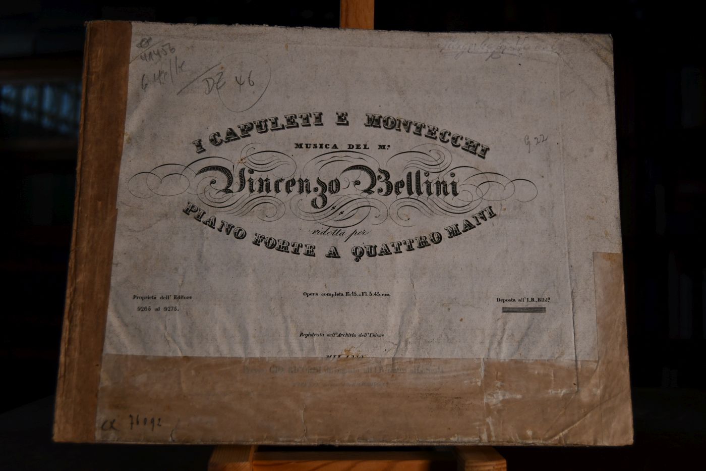 I Capuleti e Montecchi. Musica del Mo. Vincenzo Bellini vidotta per Piano Forte a quattro mani.