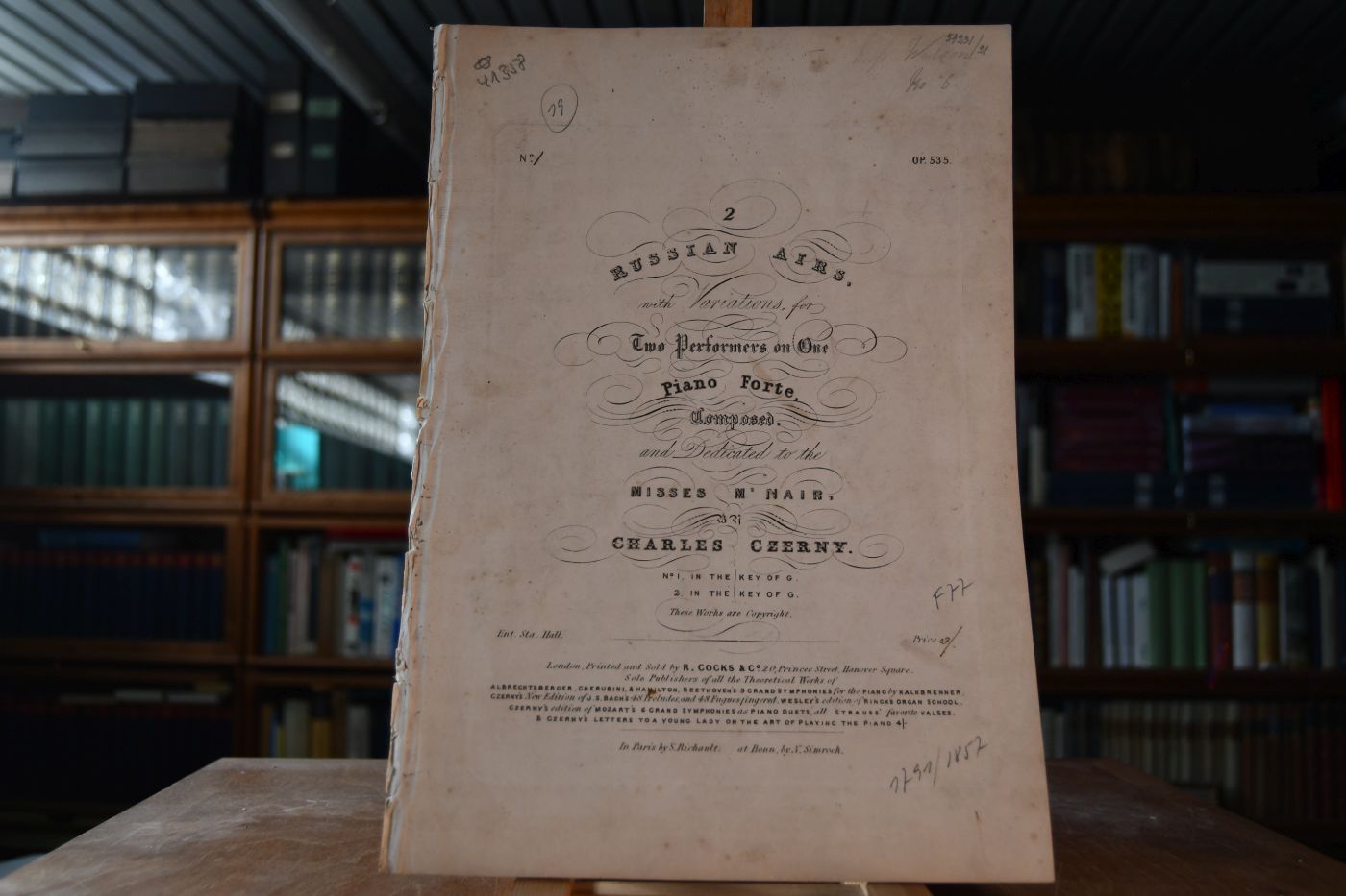 2 Russian Airs, with Variations, for Two Performers on One Piano Forte, composed, and Dedicated to the Misses M` Nair, by Charles Czerny. No.1 In the Key of G. Op. 535