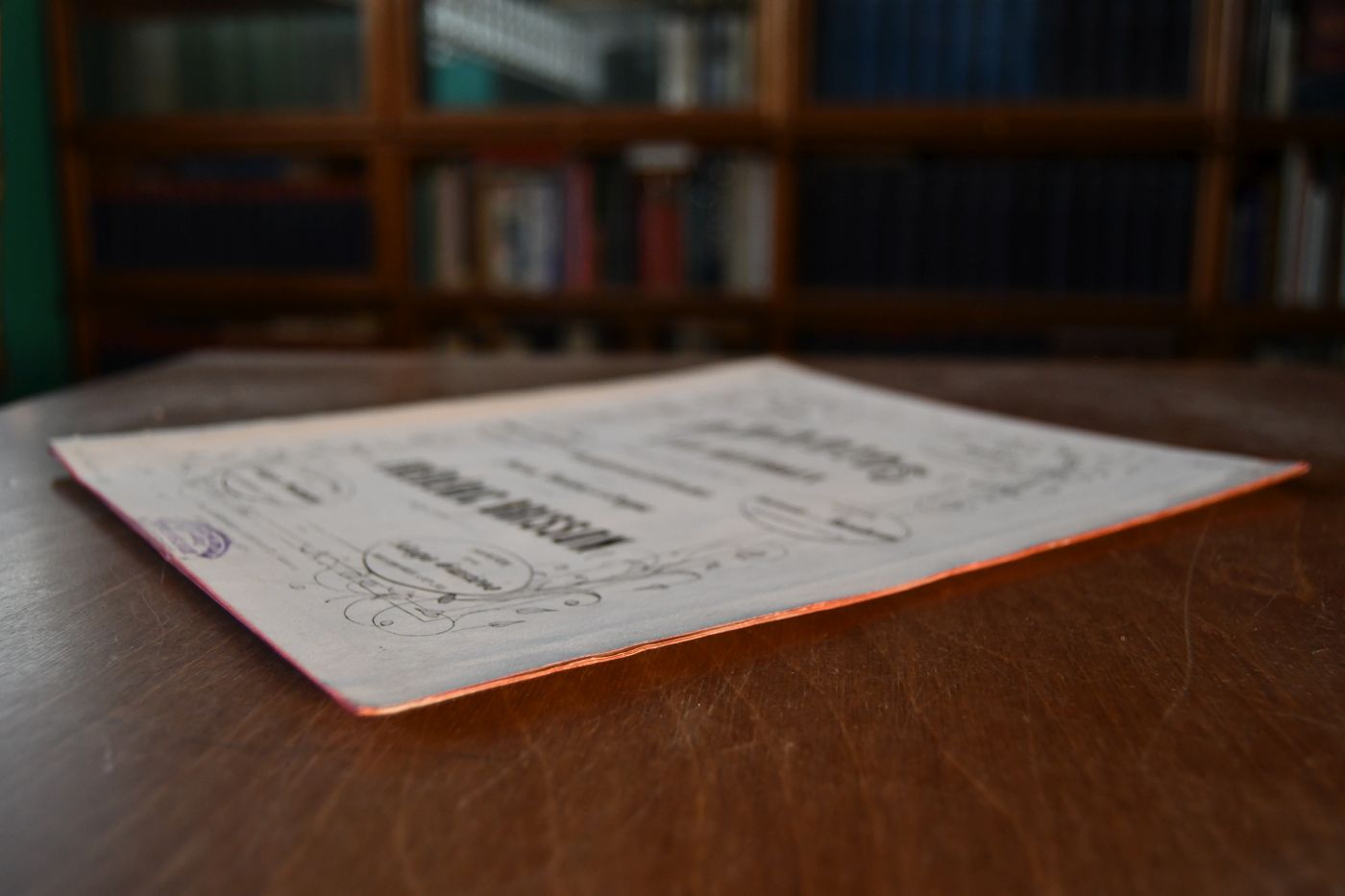 Format 32 x 25 cm, Doppelblatt aus Sammlung ausgelöst, ohne Umschlag mit umlaufenden Rotschnitt