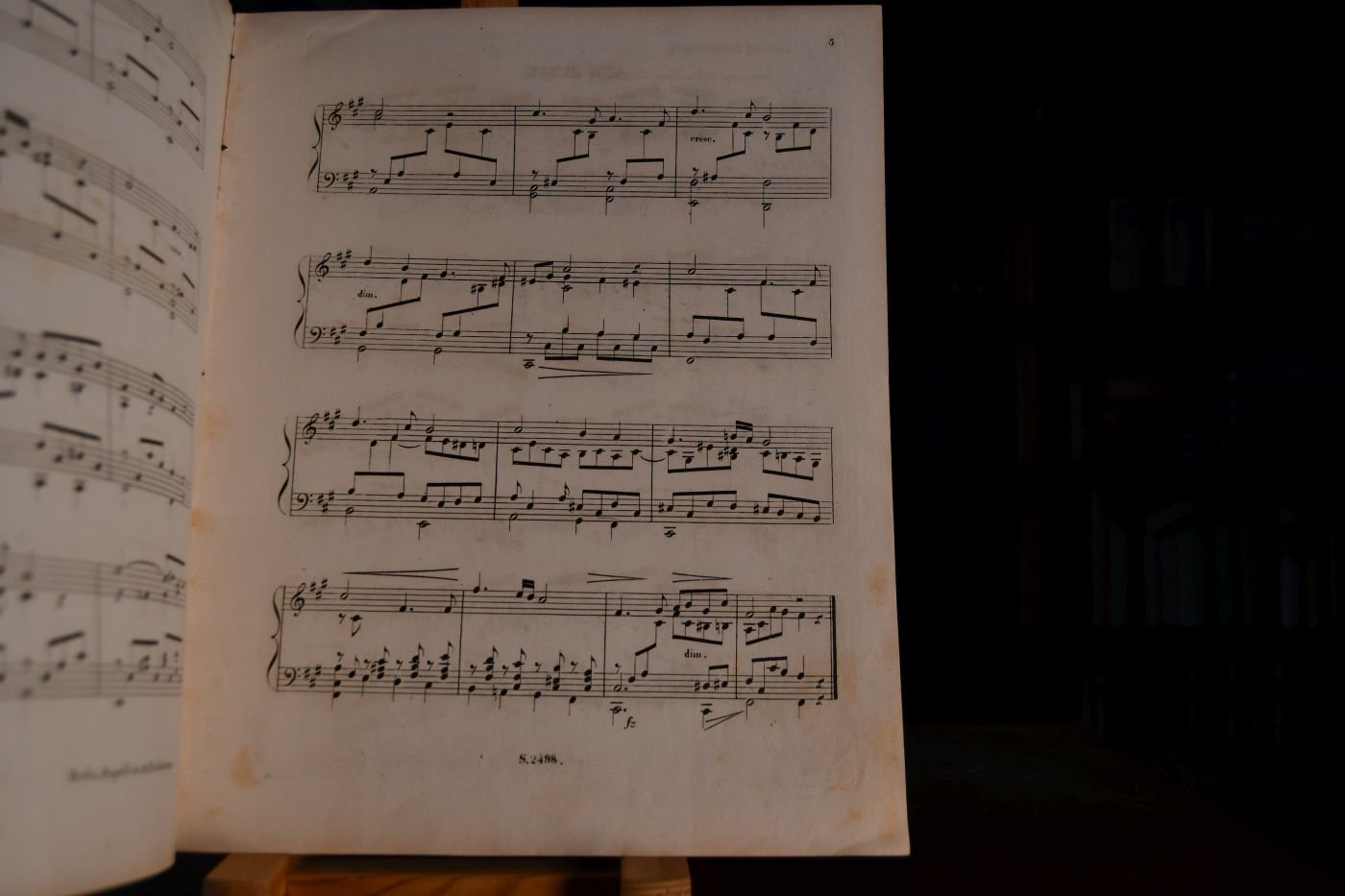 Beschreibung Berieben und bestoßen. Durchgehend fleckig. Mit Bleistiftanmerkungen zum Fingersatz.