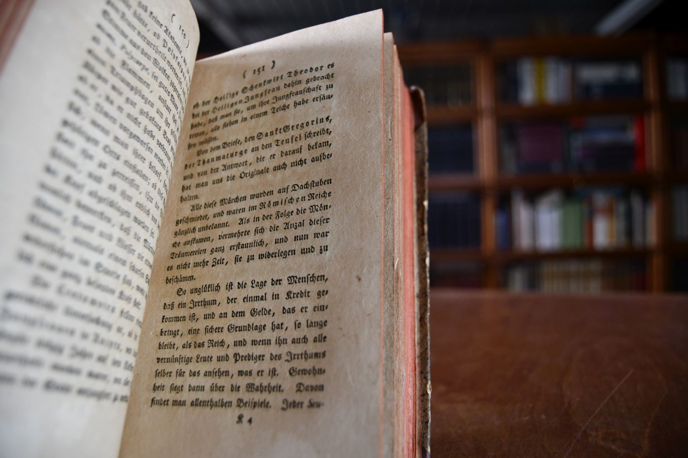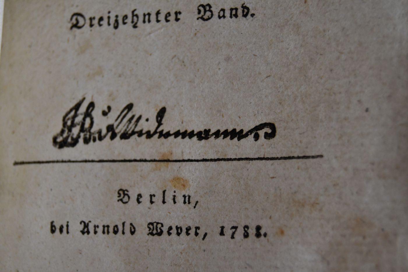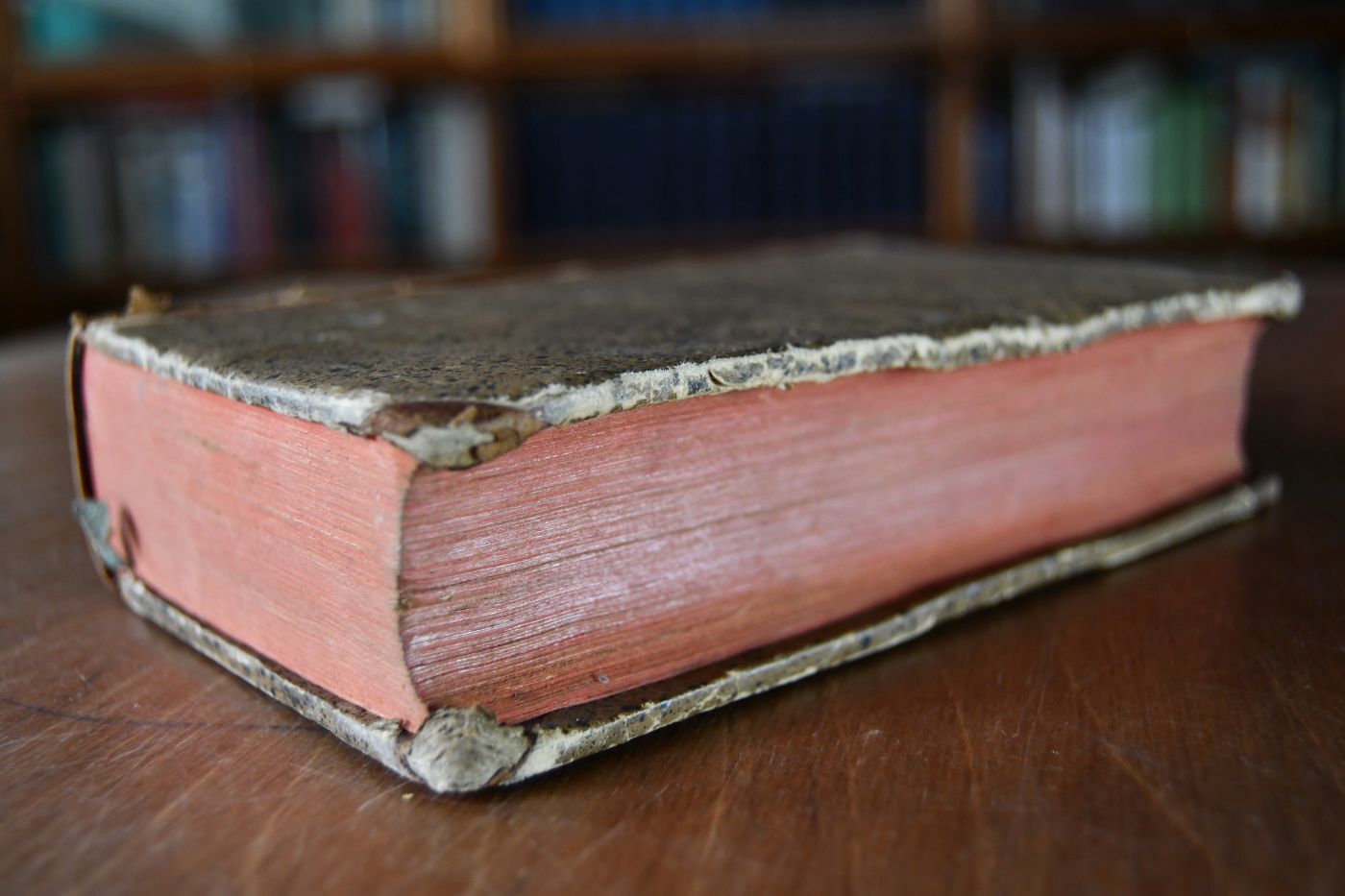 Format 17 x 11 cm, Halbleder der Zeit mit 5 Bünden, zwei Rückenschilden und Rückenvergoldung sowie umlaufendem Rotschnitt
