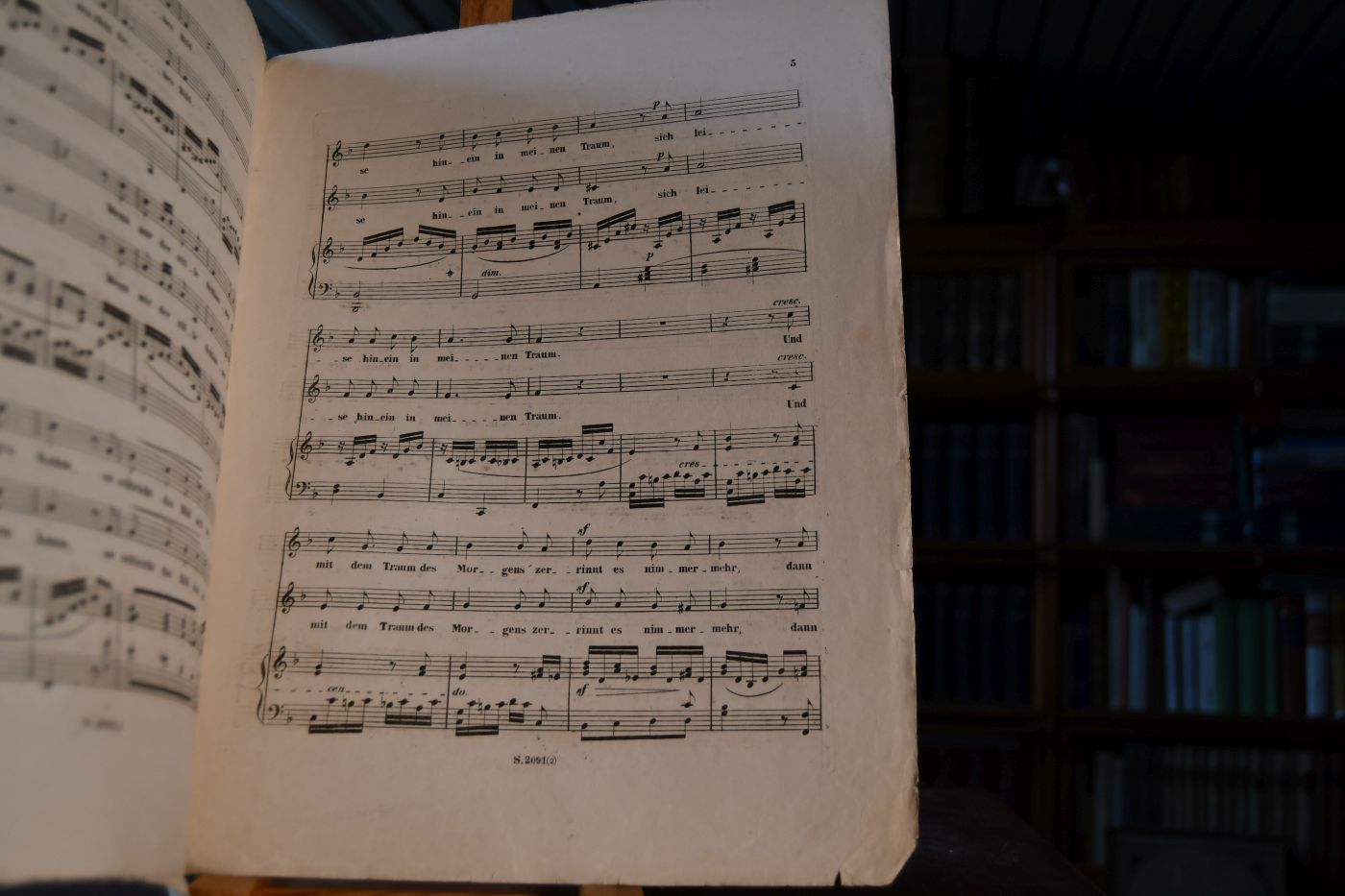 Drei Volkslieder von H.Heine und Kaufmann für zwei Stimmen mit Begleitung des Pianoforte. Abendlied, Volkslied gedichtet von H. Heine 2. Wenn ich auf dem Lager liege.