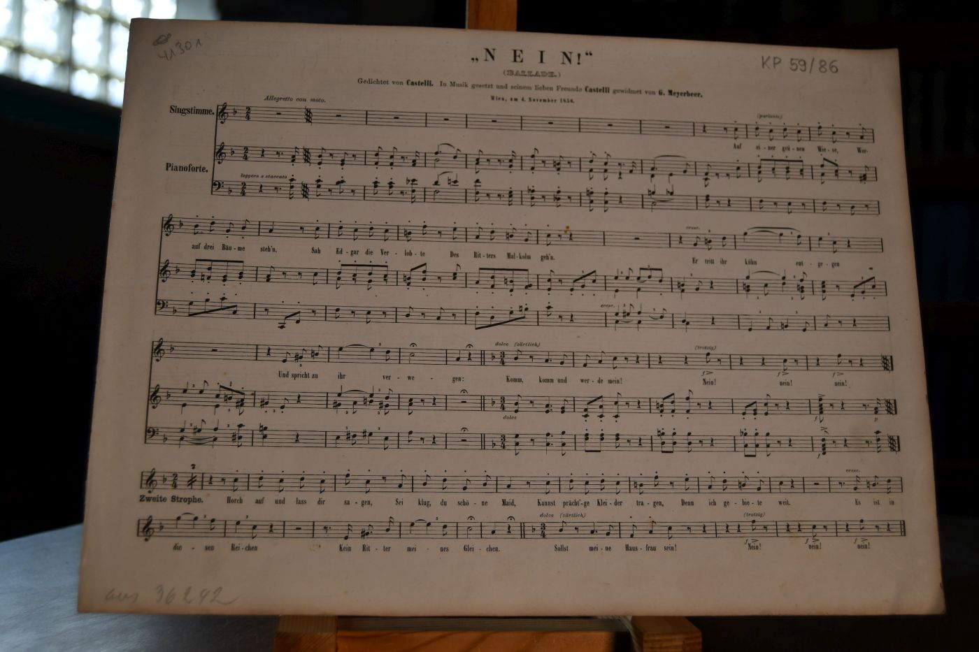 "Nein!" (Ballade.) Gedichtet von Castelli. In Musik gesetzt und seinem lieben Freunde Castelli gewidmet von G. Meyerbeer. WIen, am 4. November 1856.