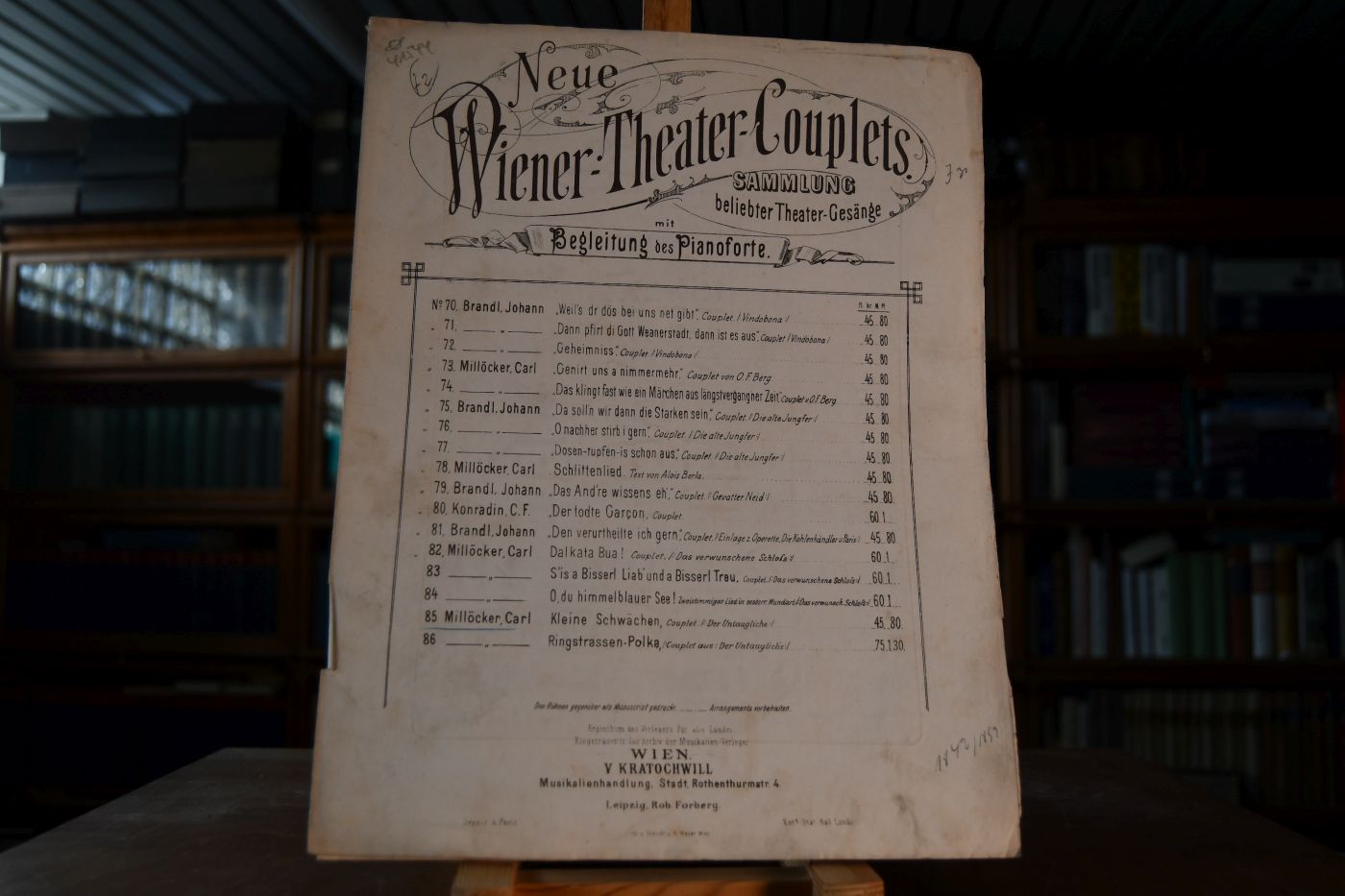Neue Wiener-Theater-Couplets. Sammlung beliebter Theater-Gesänge mit Begleitung des Pianoforte. No. 85.