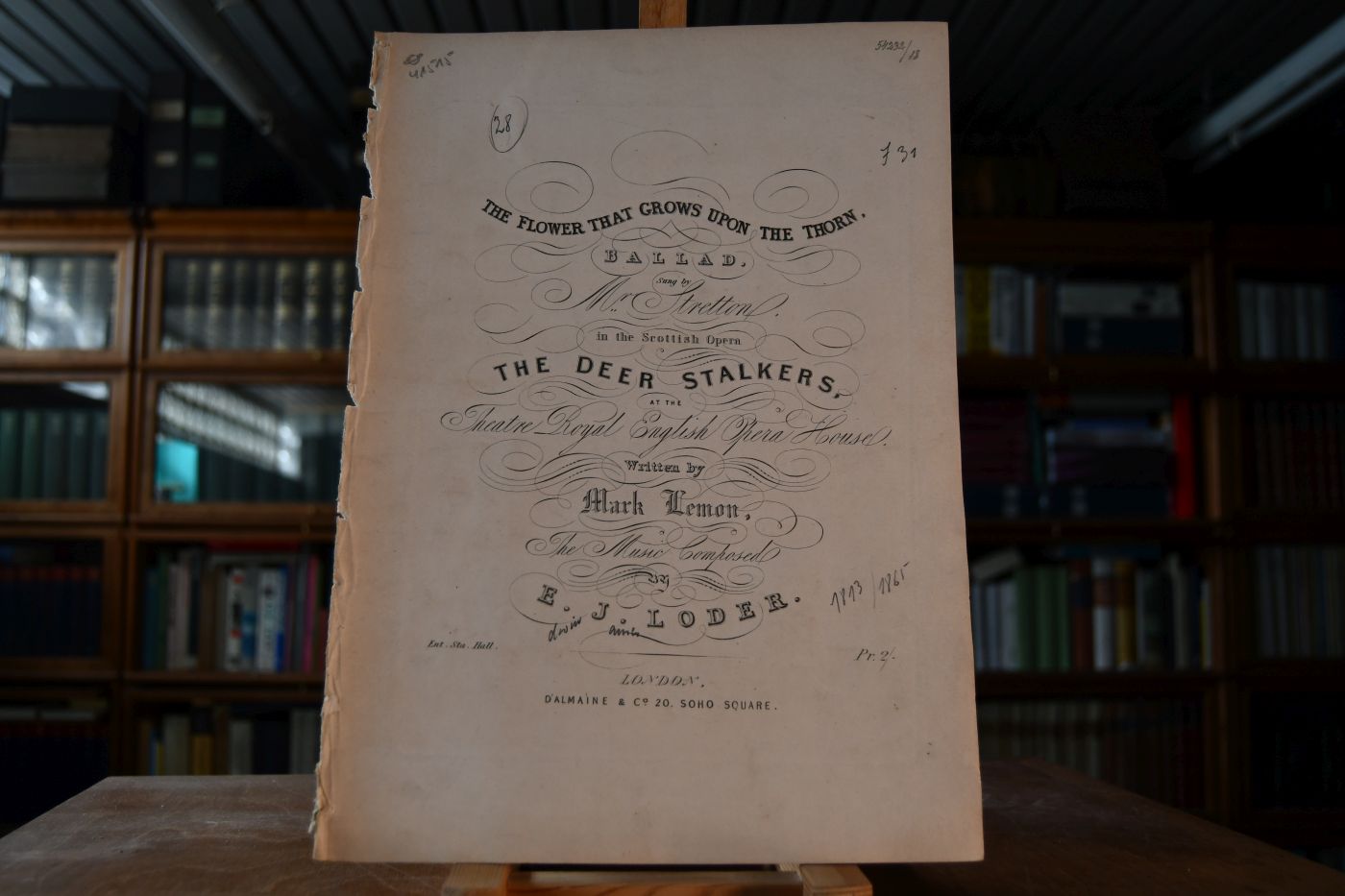 The Flower that grows upon the thorn. Ballad. Sung by Mr. Stretton in the Scottish Opera The Deer Stalkers at the Theatre Royal English Opera House. Written by Mark Lemon, the music composed by E.J. Loder.