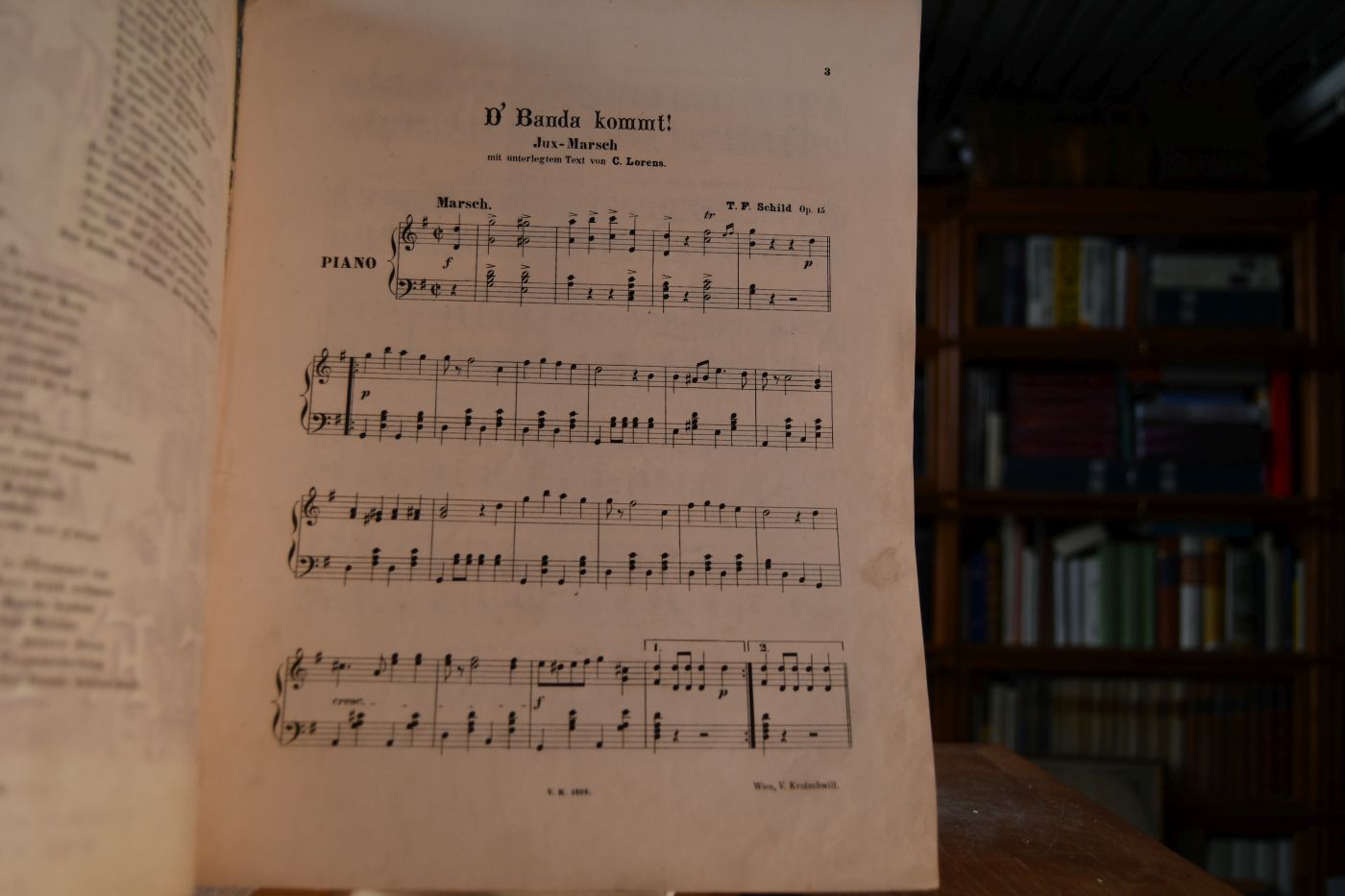 D` Banda kommt! Jux-Marsch für Pianoforte mit unterlegtem Text von C. Lorens. Op. 15.