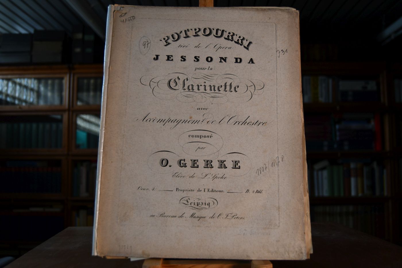 Potpourri tire de l`Opera Jesonda pour la Clarinette avec Accompagnement de l`Orchestre compose par O. Gerke Eleve de L. Spohr. Oeuv. 4.
