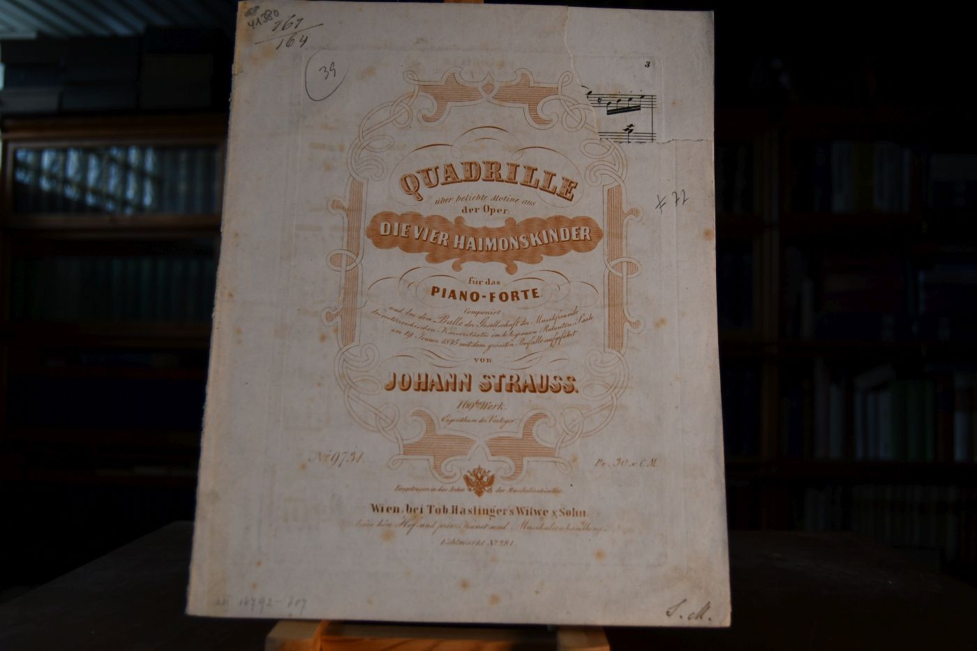 Quadrille über beliebte Motive aus der Oper Die vier Haimonskinder für das Piano-Forte componiert, und bei dem Balle der Gesellschaft der Musikfreunde des oesterreichischen Kaiserstaates im k. k. großen Redouten-Saale am 19. Jenner 1845 mit dem grössten Beifalle aufgeführt. 169. Werk.
