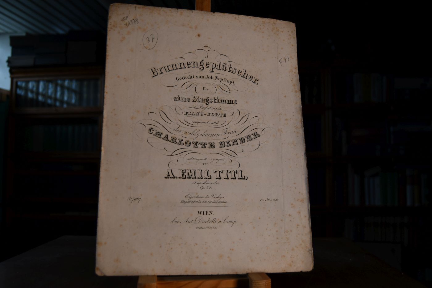 Brunnengeplätscher. Gedicht von Joh. Nep. Vogl für eine Singstimme mit Begleitung des Piano-Forte componirt und der wohlgebornen Frau Charlotte Binder achtungsvoll zugeeignet. Op. 34.