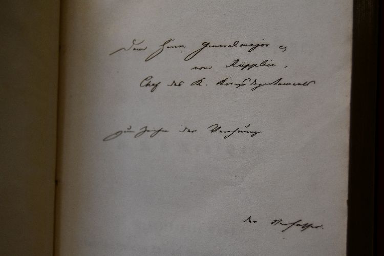 Beschreibung Einband berieben und bestoßen. Rücken mit Einrissen. Handschriftliche Widmung des Verfassers an Herrn Generalmajor von Rüpplin, Chef des K. Kriegsdepartements auf dem fliegenden Vorsatz. Innen gelegentlich mit Anschmutzungen. Insgesamt sehr schöne, dekorativ gebundene Bände.