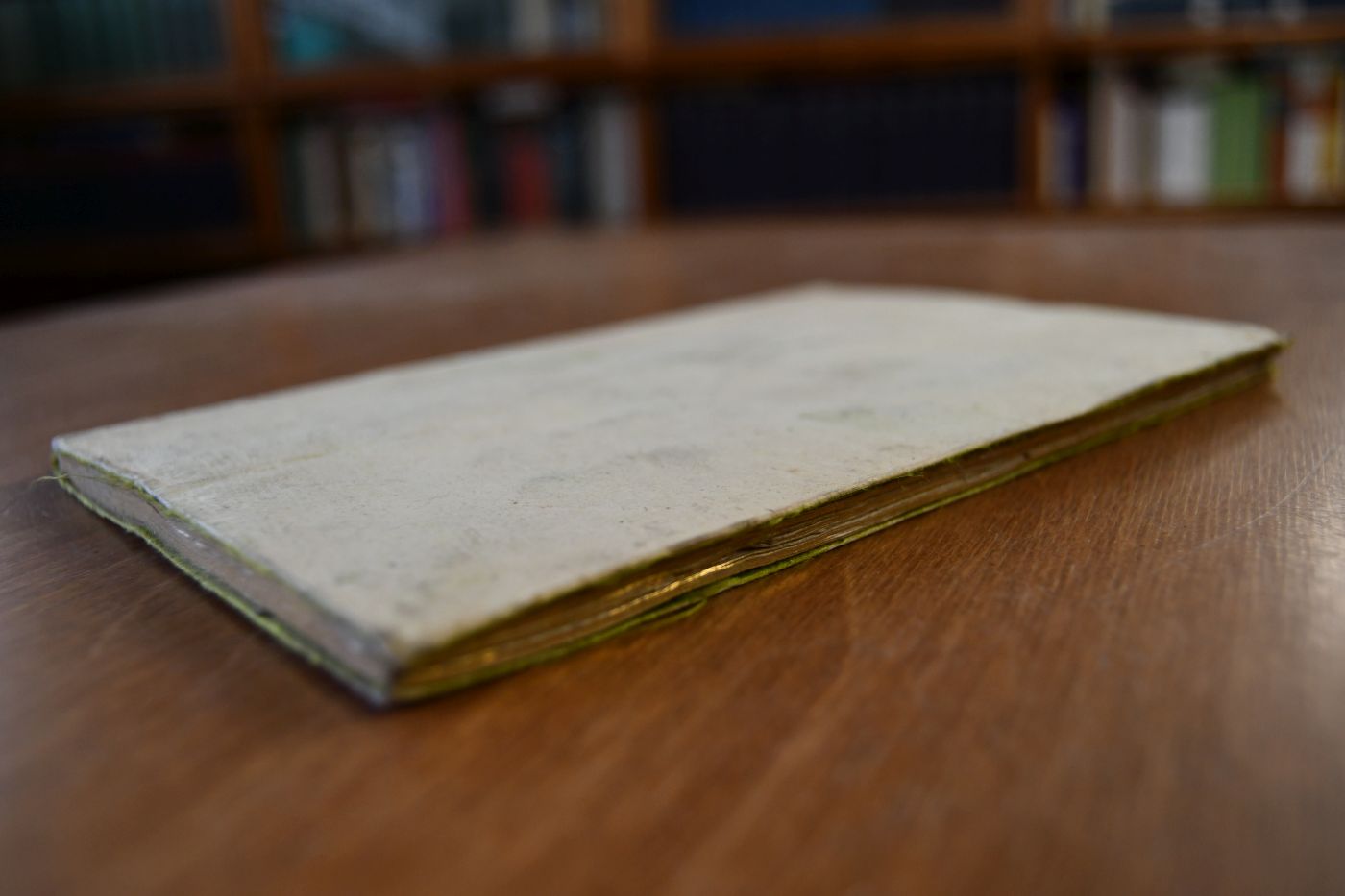 Format 20 x 13 cm, Pappband mit umlaufendem Goldschnitt (der ursprüngliche Seidenüberzug fehlt und ist nur noch an den Steginnenkanten vorhanden)