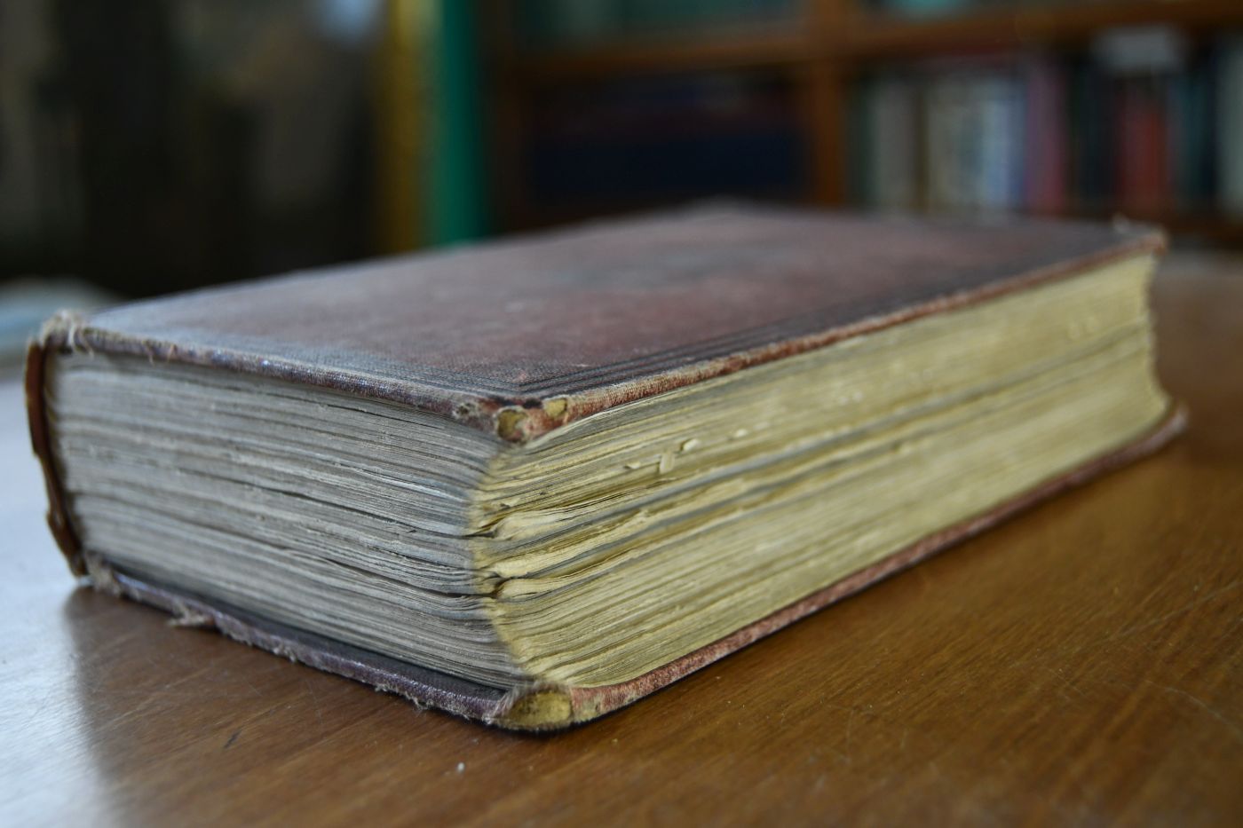 Beschreibung Einband berieben, bestoßen und mit Einrissen. Bindung gelockert, einige Lagen vorgefallen. Innen durchgehend fleckig. Wenige Marginalien. Vorsatz und Frontinspiz mit etwas Randverlust.