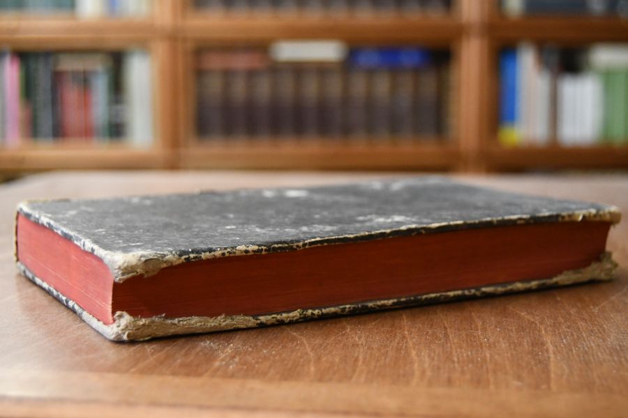 Format 22 x 14 cm, Pappband der Zeit mit 2 Rückenschilden und umlaufendem Rotschnitt