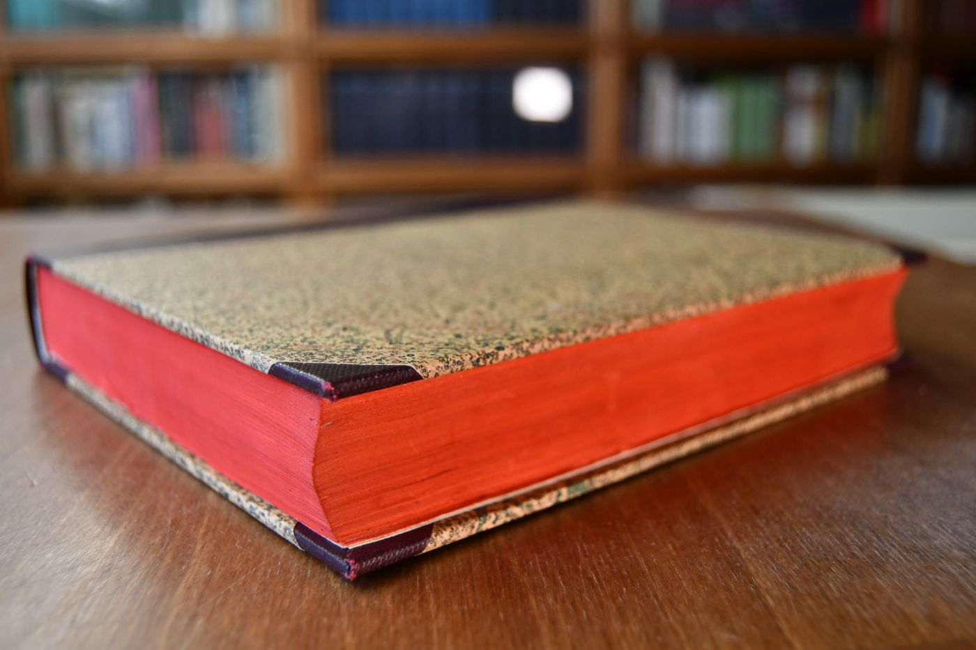 Format 21 x 18 cm, neueres Halbleinen mit umlaufendem Rotschnitt