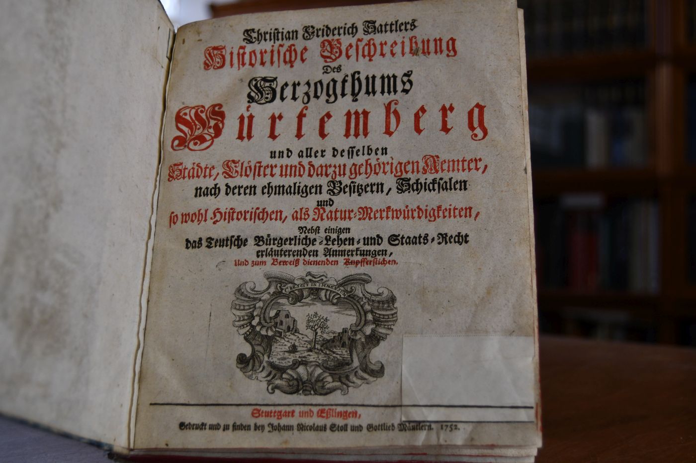 Historische Beschreibung des Herzogthums Würtemberg und aller desselben Städte, Clöster und darzu gehörigen Aemter, nach deren ehmaligen Besitzern, Schicksalen und sowohl Historischen, als Natur-Merkwürdigkeiten, Nebst einigen das Teutsche Bürgerliche-, Lehen- und Staats-Recht erläuternden Anmerkungen, und zum Beweiß dienenden Kupfferstichen.