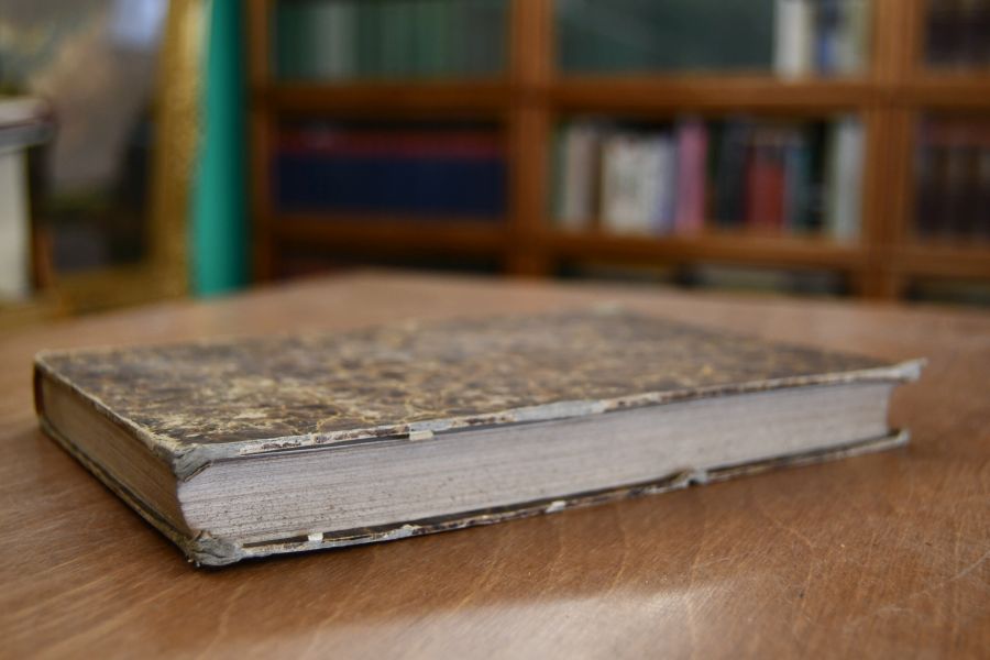 Format 22 x 16 cm, Pappband der Zeit mit handschriftliuchem Standort und Rückentitel.