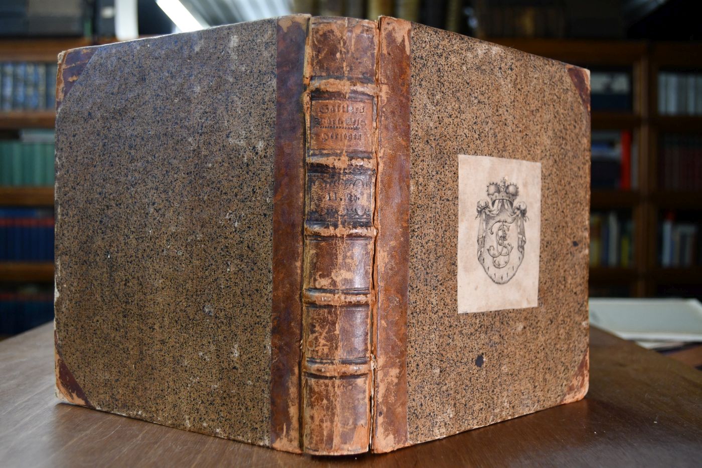 Beschreibung Einband berieben, bestoßen und am Rücken mit Einrissen. Durchgehend etwas fleckig. Auf dem Vorderdeckel das Exlibris von Elisabeth Friederike Sophie Herzogin von Württemberg der Gemahlin von Herzog Karl Eugen. Elisabeth Friedrike Sophie stiftete ihre Bibliothek der Hohen Carlsschule. Heyd I, 129.