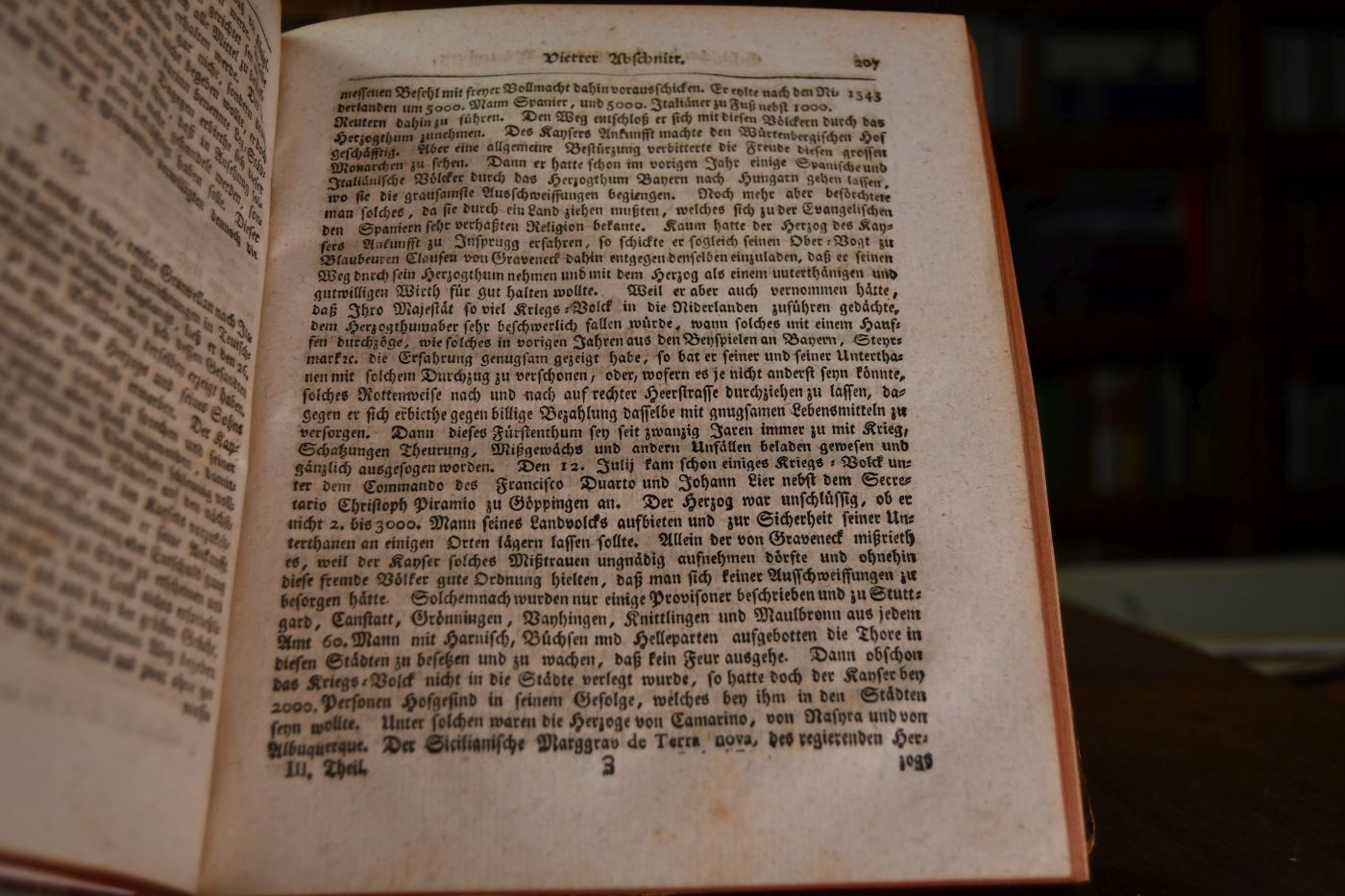 Seiten 9 Bll., 290, 296 S., 7 Bll. mit 1 gest. Porträttafel (Herzog Georg) und 2 gestochenen Tafeln sowie 1 Vignette.