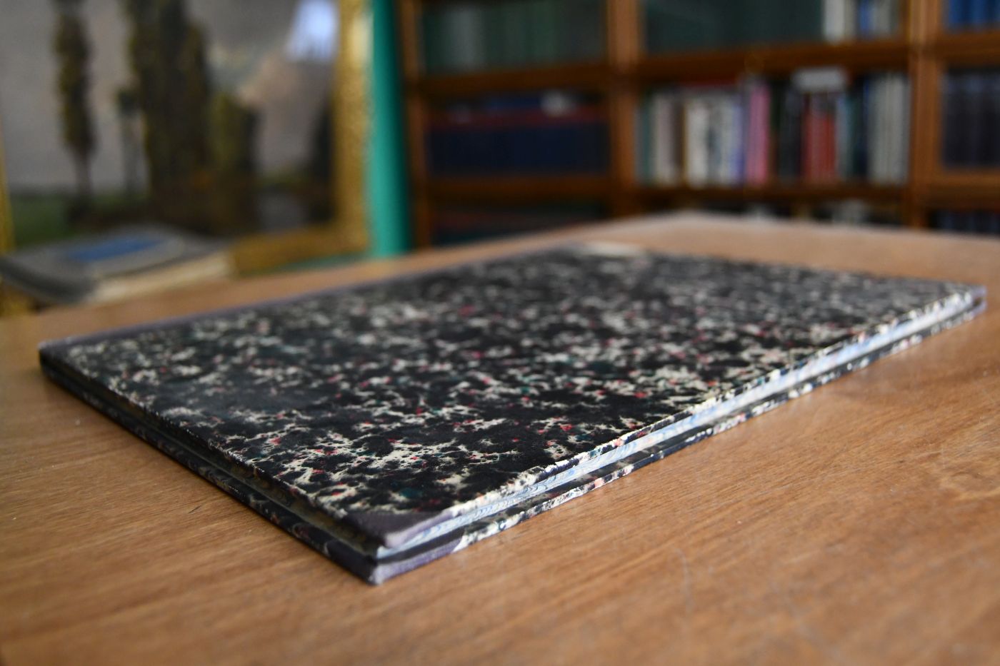 Format 24 x 17 cm, Halbleinen ohne Schutzumschlag mit aufgeklebtem handschriftlichen Bibliotheksstandort auf Rücken