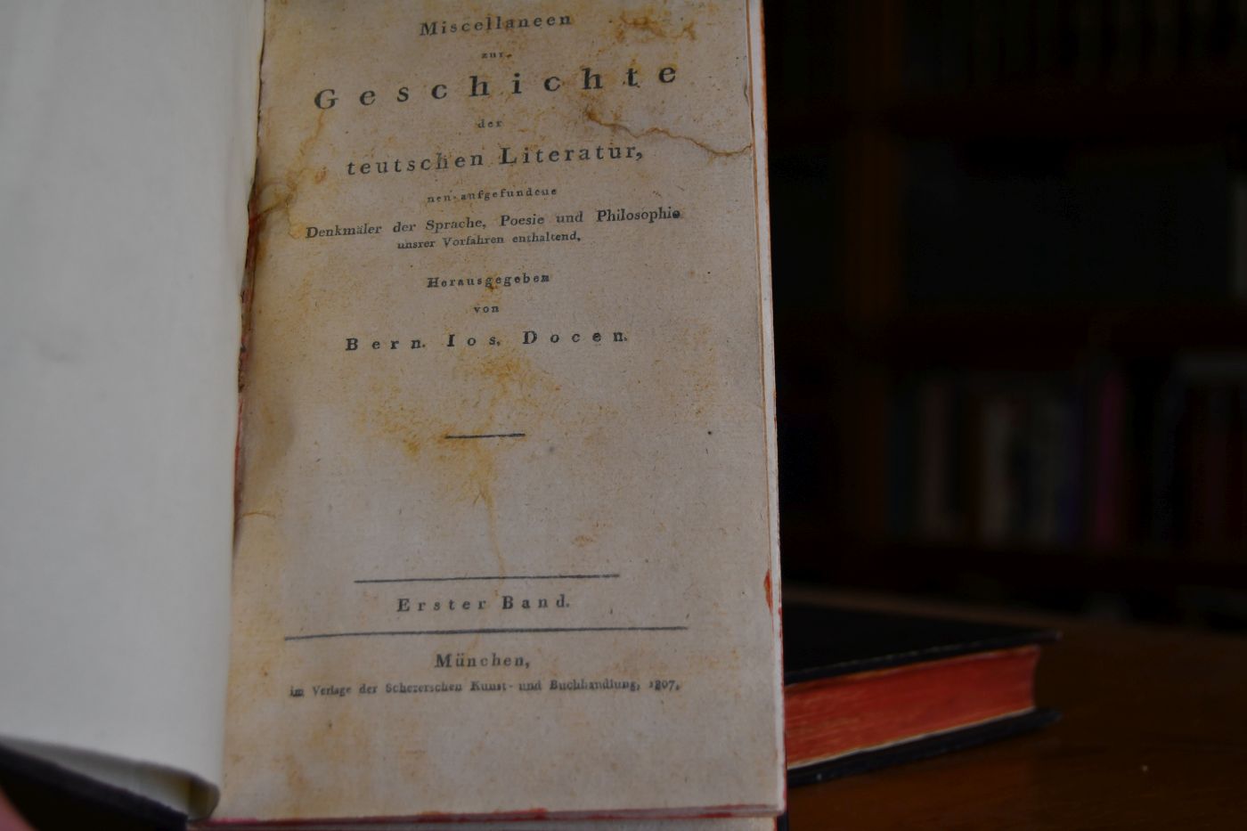Miscellaneen zur Geschichte der teutschen Literatur, neu aufgefundene Denkmäler der Sprache, Poesie und Philosophie unsrer Vorfahren enthaltend. 2 Bde.