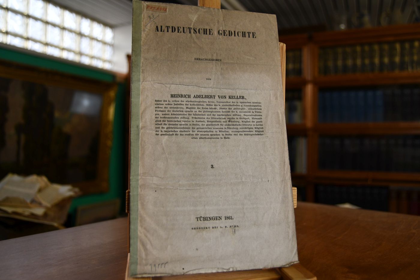 Einband berieben, bestoßen und angeschmutzt. Quetschfaltig und mit Einrissen.