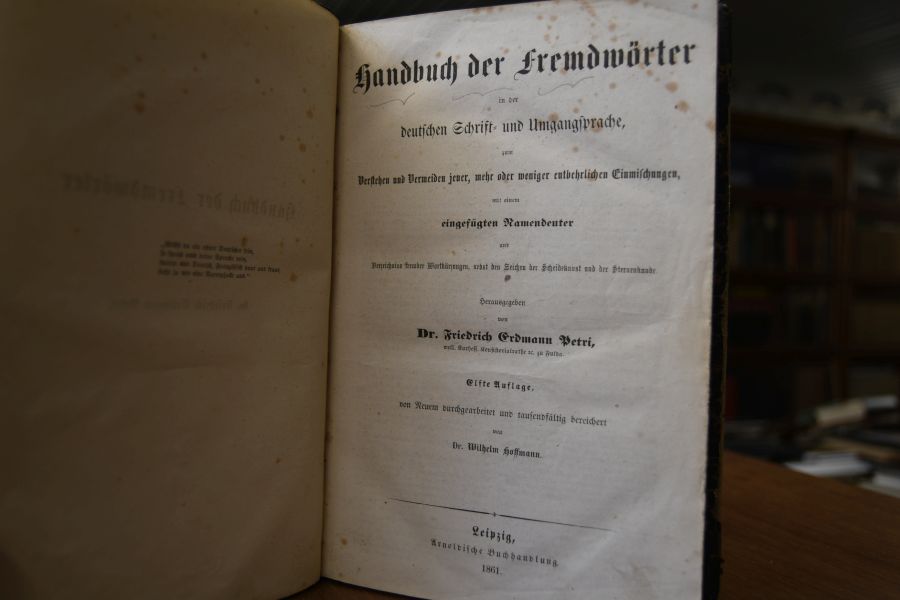 Handbuch der Fremdwörter in der deutschen Schrift- und Umgangsprache, zum Verstehen und Vermeiden jener, mehr oder weniger entbehrlichen Einmischungen mit einem eingefügten Namendeuter und Verzeichniss fremder Wortkürzungen, nenbst den Zeichen der Scheidekunst und der Sternenkunde.