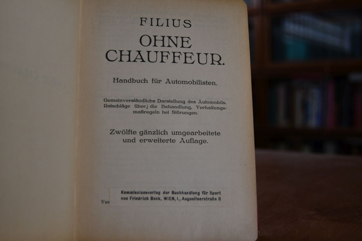 Ohne Chauffeur. Handbuch für Automobilisten. Gemeinverständliche Darstellung des Automobils. Ratschläge über die Behandlung, Verhaltunsmaßregeln bei Störungen.
