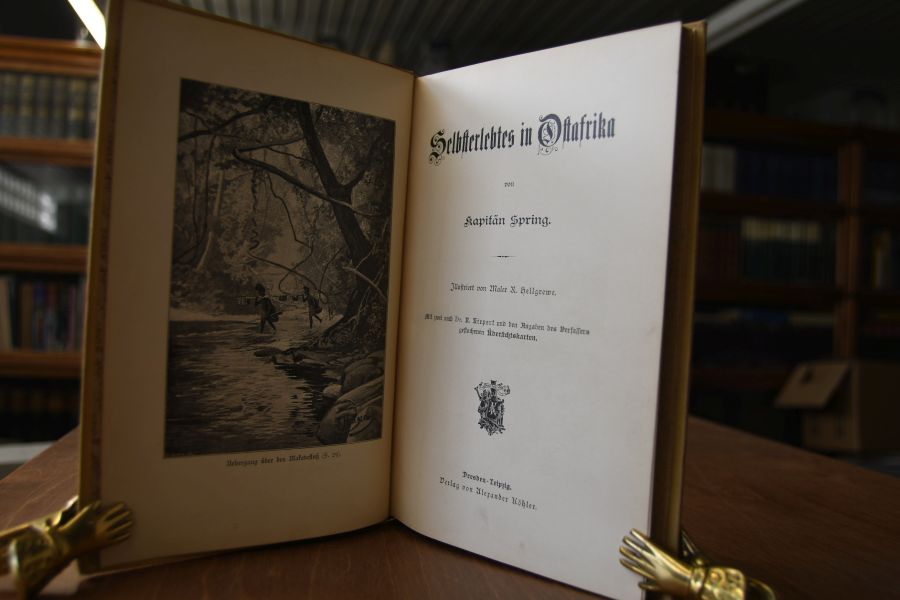 Beschreibung Einband berieben, bestoßen und etwas angeschmutzt. Handschriftlicher Besitzereintrag und private Widmung auf fliegendem Vorsatz. Gelegentlich wenig fleckig. Heftklammern leicht korrodiert. Der aus Bruchsal stammende Kapitän "vermaß im Auftrag desDeutschen Antisklaverei-Komitees vonOkt. 1892 bis Jan. 1893auf drei Touren die südöstlichen Gestade des Victoria-Seesund machte diesen Seeteil zu den am bestenkartierten. Seinestronomischen Ortsbestimmungenbedingten eine Verschiebung des Seesnach W um 17 Km. Die von O. Baumann entdeckte Buchtim N des Speke-Golfsbenannte er nach ihrem Entdecker." (Henze)