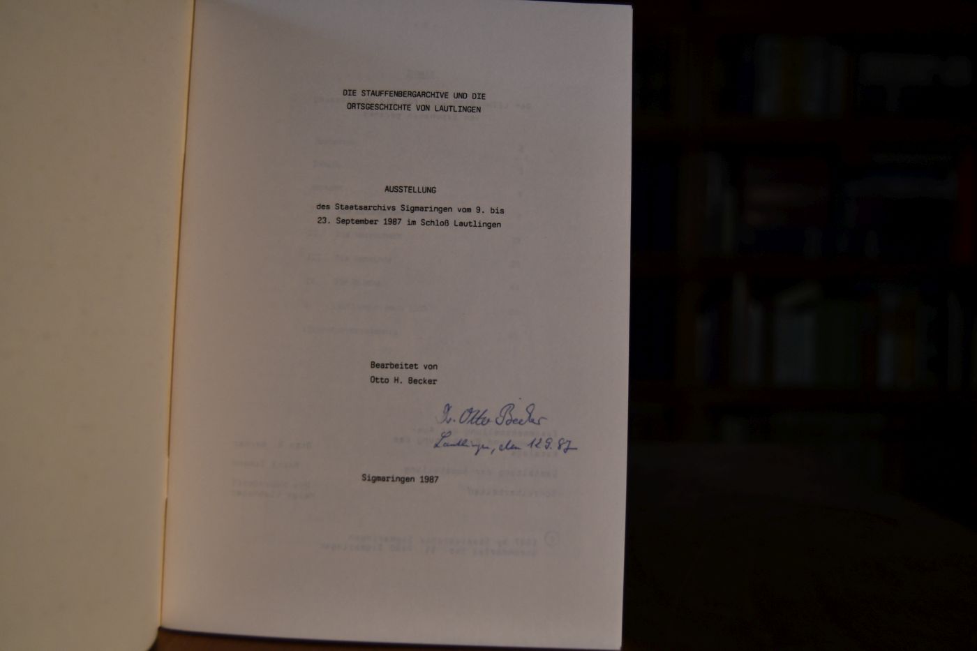 Die Stauffenbergarchive und die Ortsgeschichte von Lautlingen. Ausstellung des Staatsarchivs Sigmaringen vom 9. bis 23. September 1987 im Schloß Lautlingen.