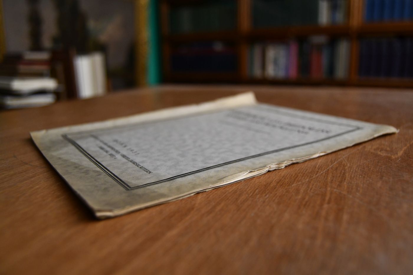 Beschreibung Einband berieben, bestoßen, angeschmutzt und fleckig. Rücken mit Spuren korrodierter Heftklammern und Verlust. Handschriftliche Widmung von Gisbert Beyerhaus auf dem Vorderdeckel.