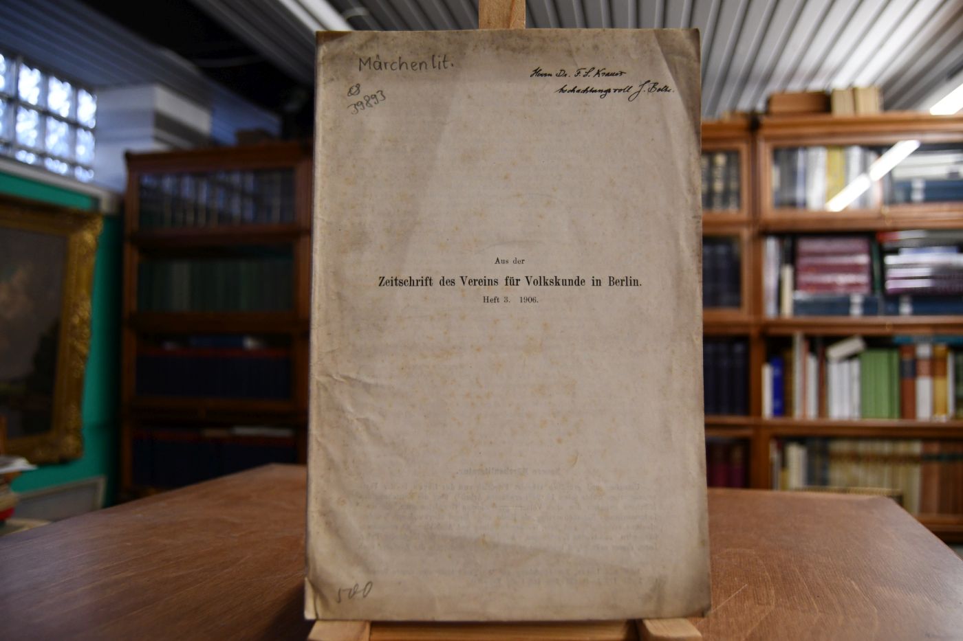 Beschreibung Einband berieben, bestoßen, angeschmutzt und fleckig. Durchgehend mit Randeinrissen und eselsohrig. Mit handschriftlicher Widmung von Johannes Bolte an Friedrich Salomon Krauss auf dem Vorderblatt.