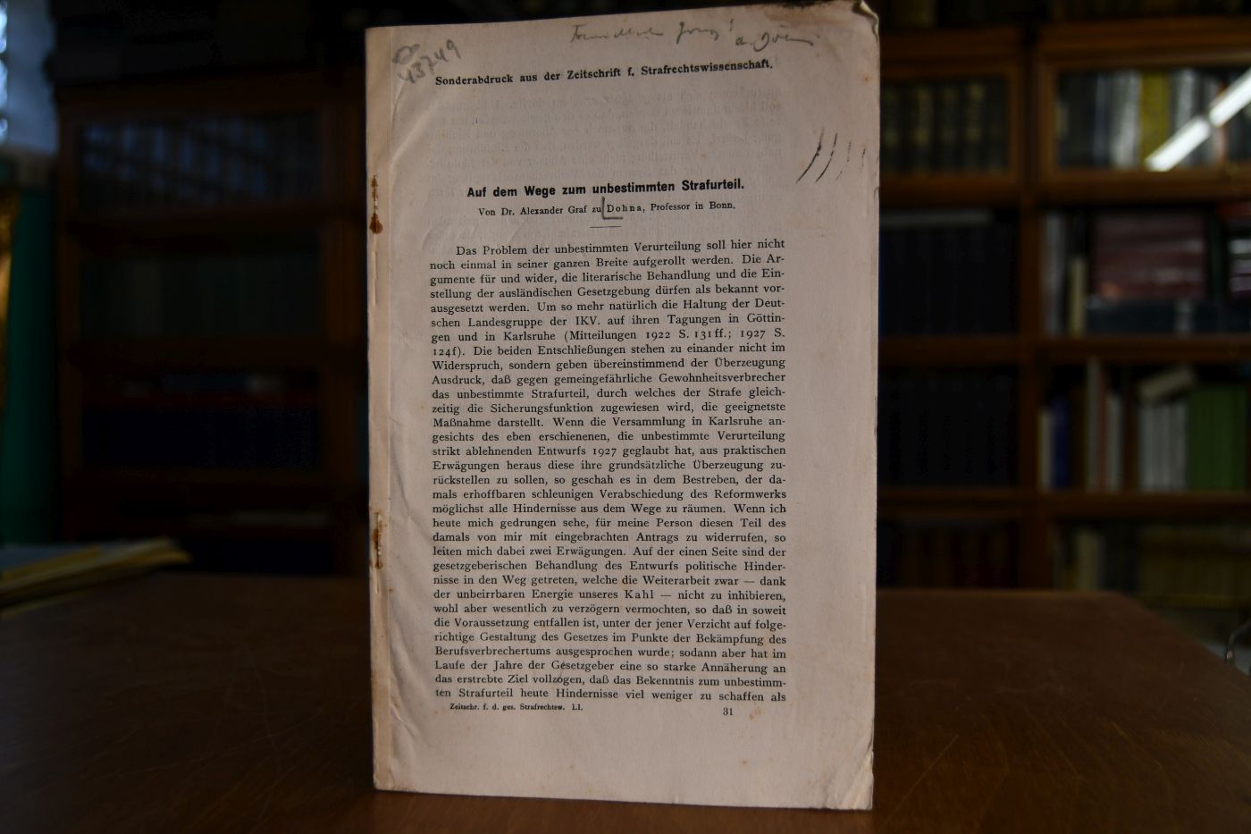 Beschreibung Einband berieben, bestoßen und angeschmutzt. Mit handschriftlicher Widmung des Verfassers auf dem Vorderdeckel. Eselsohrig. Spuren korrodierter Heftklammern. Georg Theobald Alexander Graf zu Dohna-Schlodien (* 29. Juni 1876 in Potsdam; † 25. Dezember 1944 in Bad Godesberg) war ein deutscher Rechtswissenschaftler und Politiker (DVP).