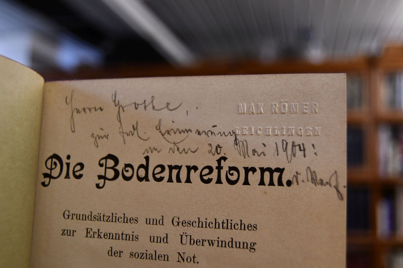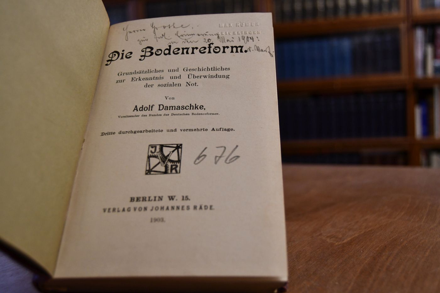 Beschreibung Einband berieben und bestoßen. Schiefgelesen. Schnitt fleckig und angeschmutzt. Besitzerprägestempel auf Vorsatz und Titel. Handschriftliche Widmung von Adolf Damaschke auf Titel. Durchgehend mit Bleistiftan- und -unterstreichungen. Korrodierte Heftklammern.