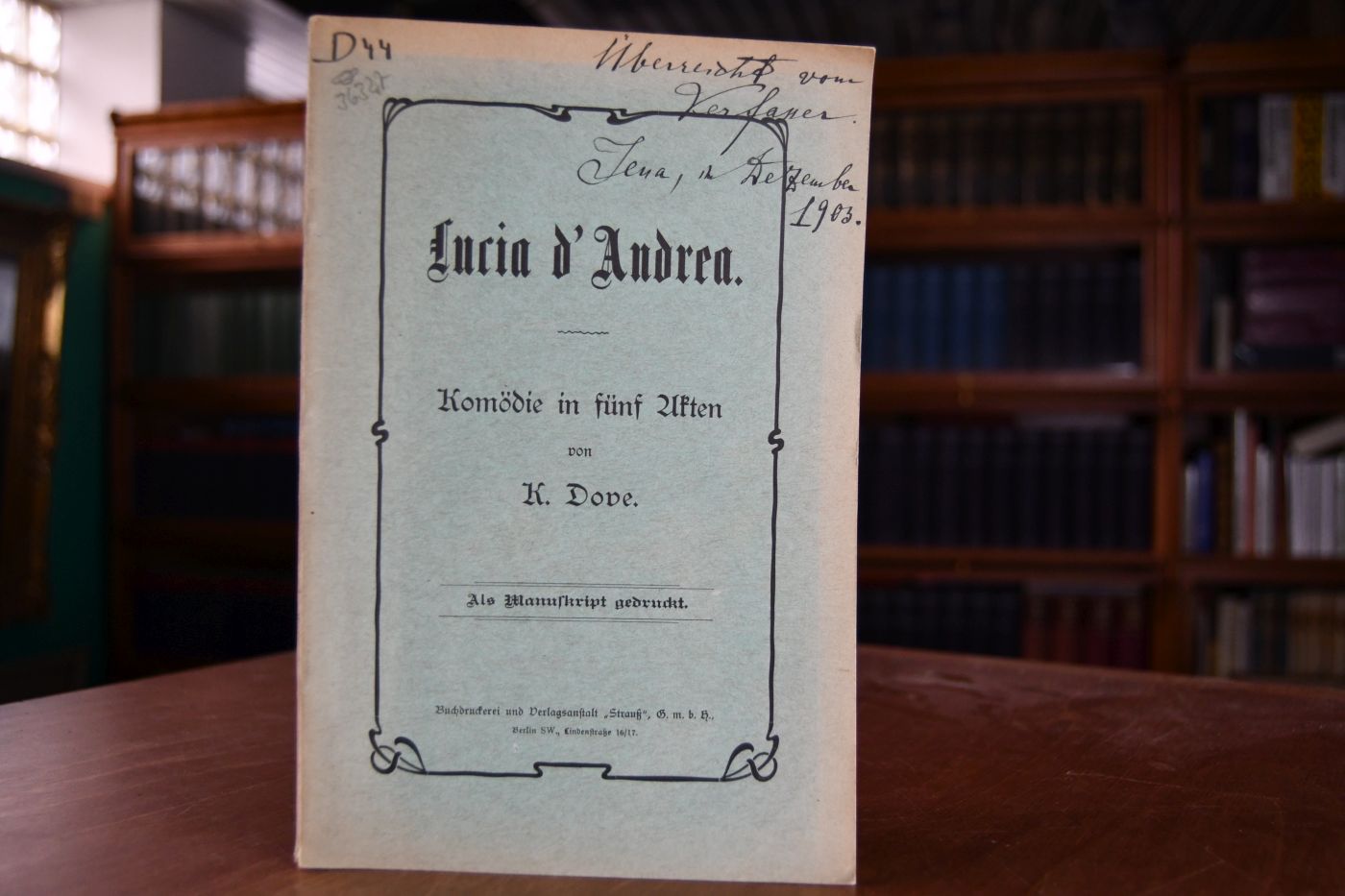 Beschreibung Einband lichtrandig, berieben, bestoßen und mit Einrissen. Mit handschriftlicher Ordnungsnummer auf dem Vorderdeckel. Innen sauber. Handschriftliche Widmung von Karl Dove auf dem Vorderdeckel.