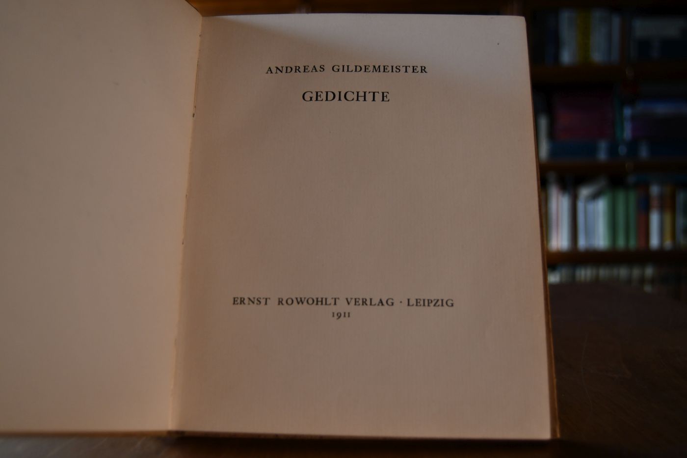 Beschreibung Einband berieben, bestoßen, fleckig und mit Einrissen am Rücken. Mit handschriftlichem Besitzereintrag (hildegard Paret) auf dem fliegenden Vorsatz und datierter, handschriftlicher Widmung von Andreas Gildemeister an Hildegard Paret auf einem weiteren Vorsatzblatt.