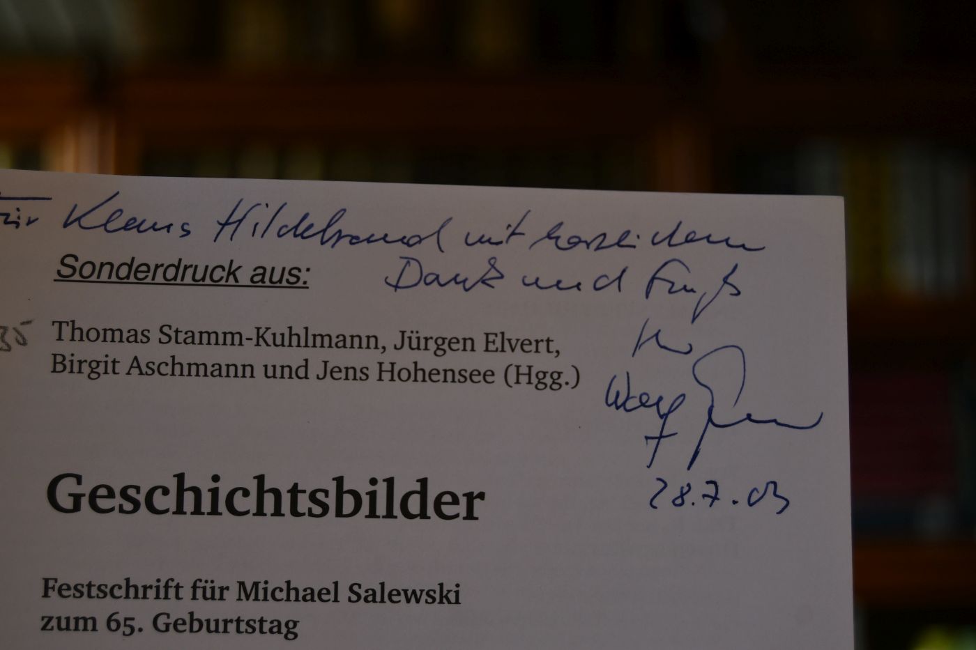 Sonderdruck aus: Geschichtsbilder. Festschrift für Michael Salewski zum 65. Geburtstag.