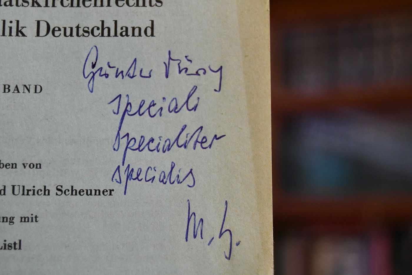 Beschreibung Einband berieben, bestoßen und gebräunt. Mit handschriftlicher Widmung von Martin Heckel an Günter Dürig auf dem Vorderdeckel.